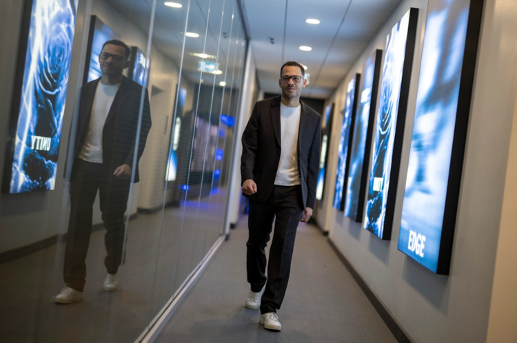 Coach Liam Rosenior at the Cobham training center, signing his contract with Chelsea until 2032.