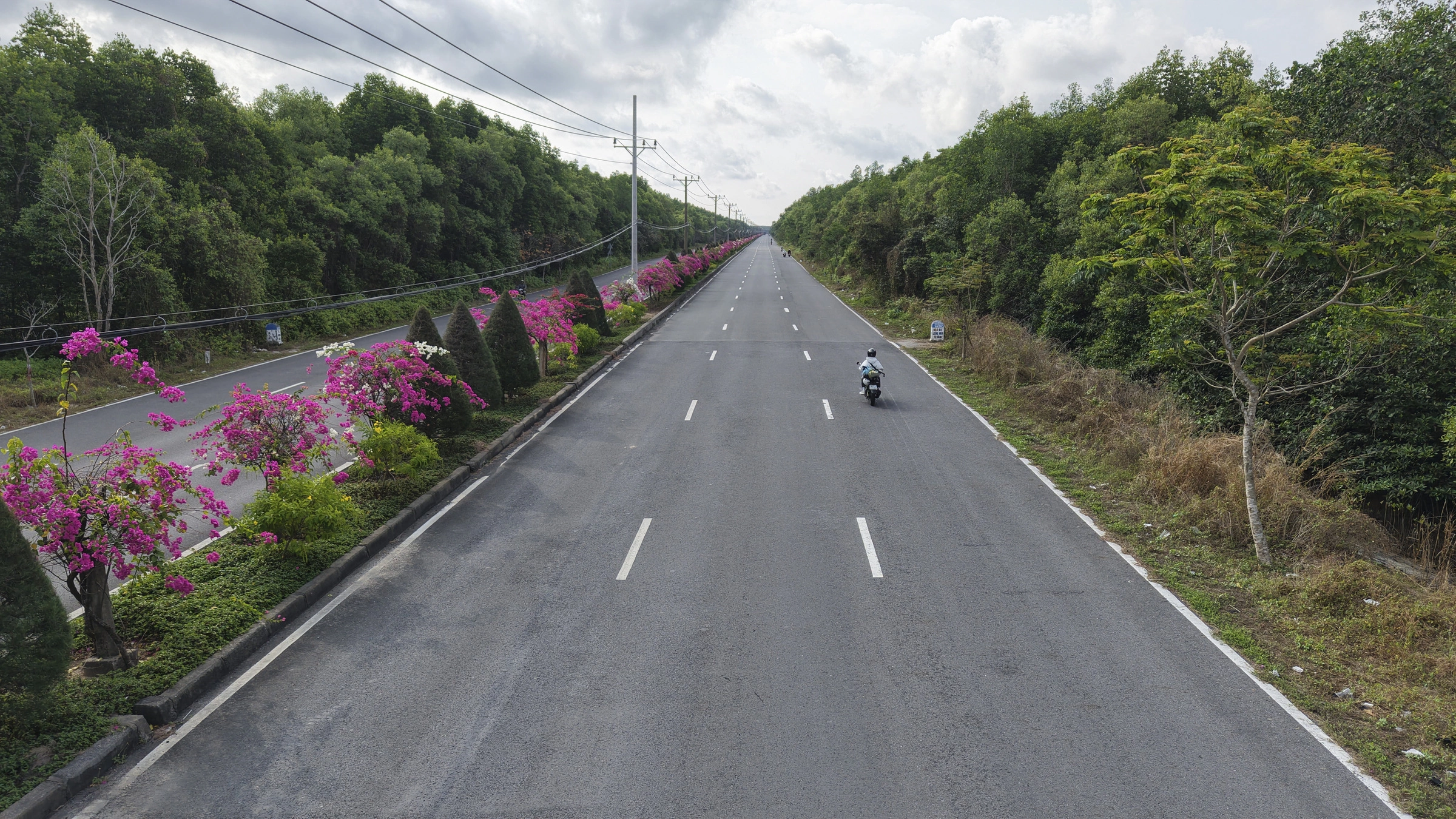 Bougainvillea blooming on Rung Sac road, part of the VM Green Paradise Can Gio route. Photo: Thanh Tung |