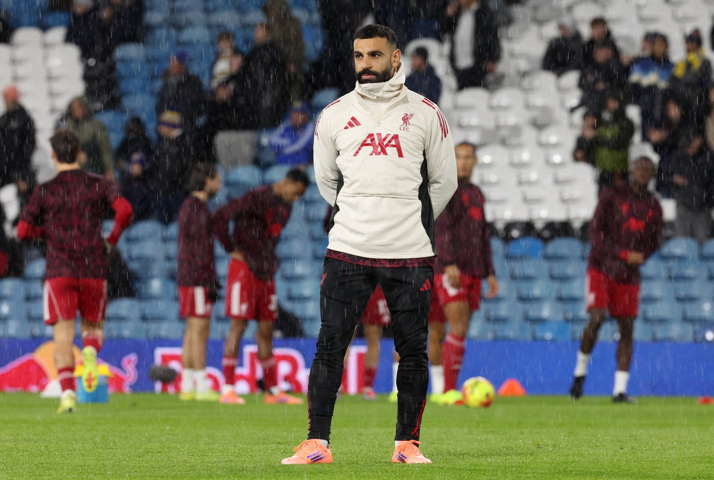 Salah on the Elland Road pitch during warm-ups before Liverpool's 3-3 draw against Leeds on 7/12. *Photo: AFP*