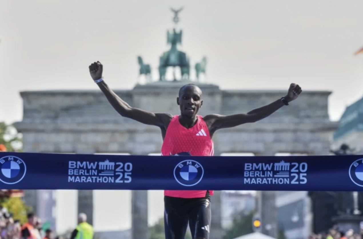 Sabastian Sawe crosses the finish line first at the Berlin Marathon on 21/9/2025. *Photo: AP*