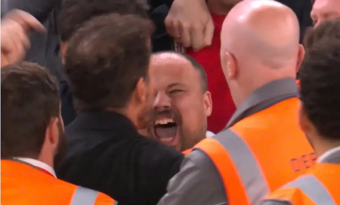 A Liverpool fan taunts coach Diego Simeone at the end of Atletico's defeat at Anfield, Liverpool, UK, during the first round of the Champions League on 17/9/2025. Photo: Screenshot |