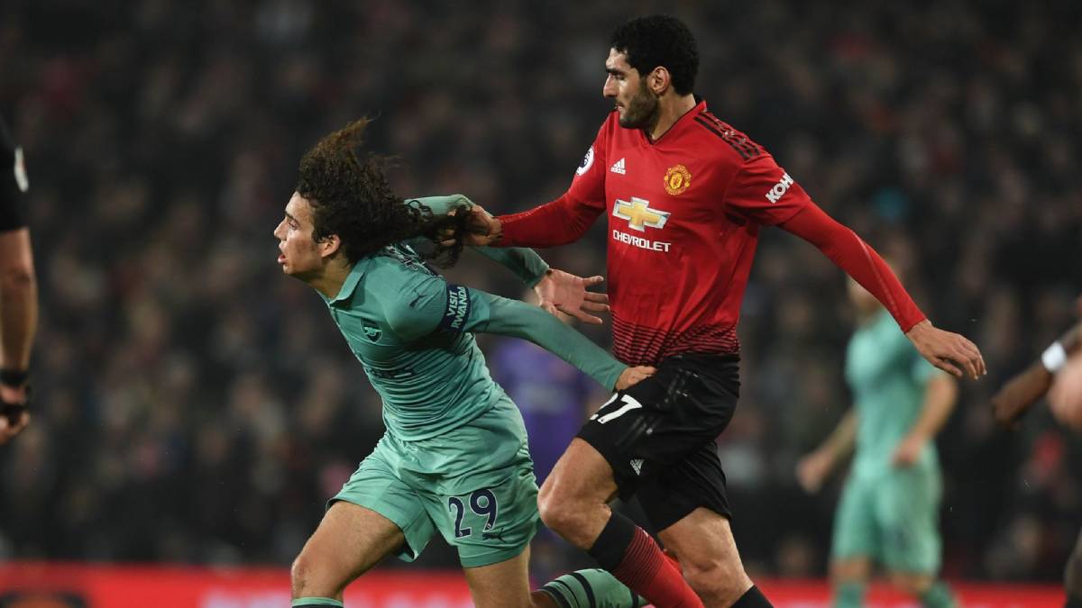 Marouane Fellaini. In 2018, during Manchester United's 2-2 Premier League draw against Arsenal at Old Trafford, Fellaini pulled Matteo Guendouzi's hair to prevent a dangerous attack. To the visiting midfielder's surprise, Fellaini was not booked, even though the referee had whistled for a foul. The Manchester United player also escaped further punishment.