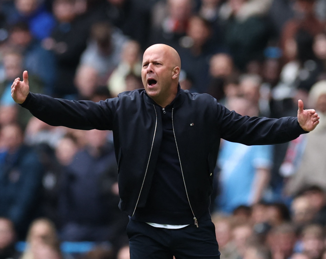 Coach Arne Slot reacts during the match. Photo: Reuters |