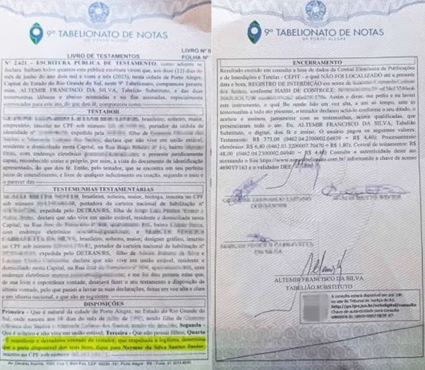 According to RIC, the will was drawn up at a notary office in Porto Alegre and officially notarized on 12/6, with two witnesses present. The matter now awaits approval from a Brazilian court before Neymar officially becomes the heir.