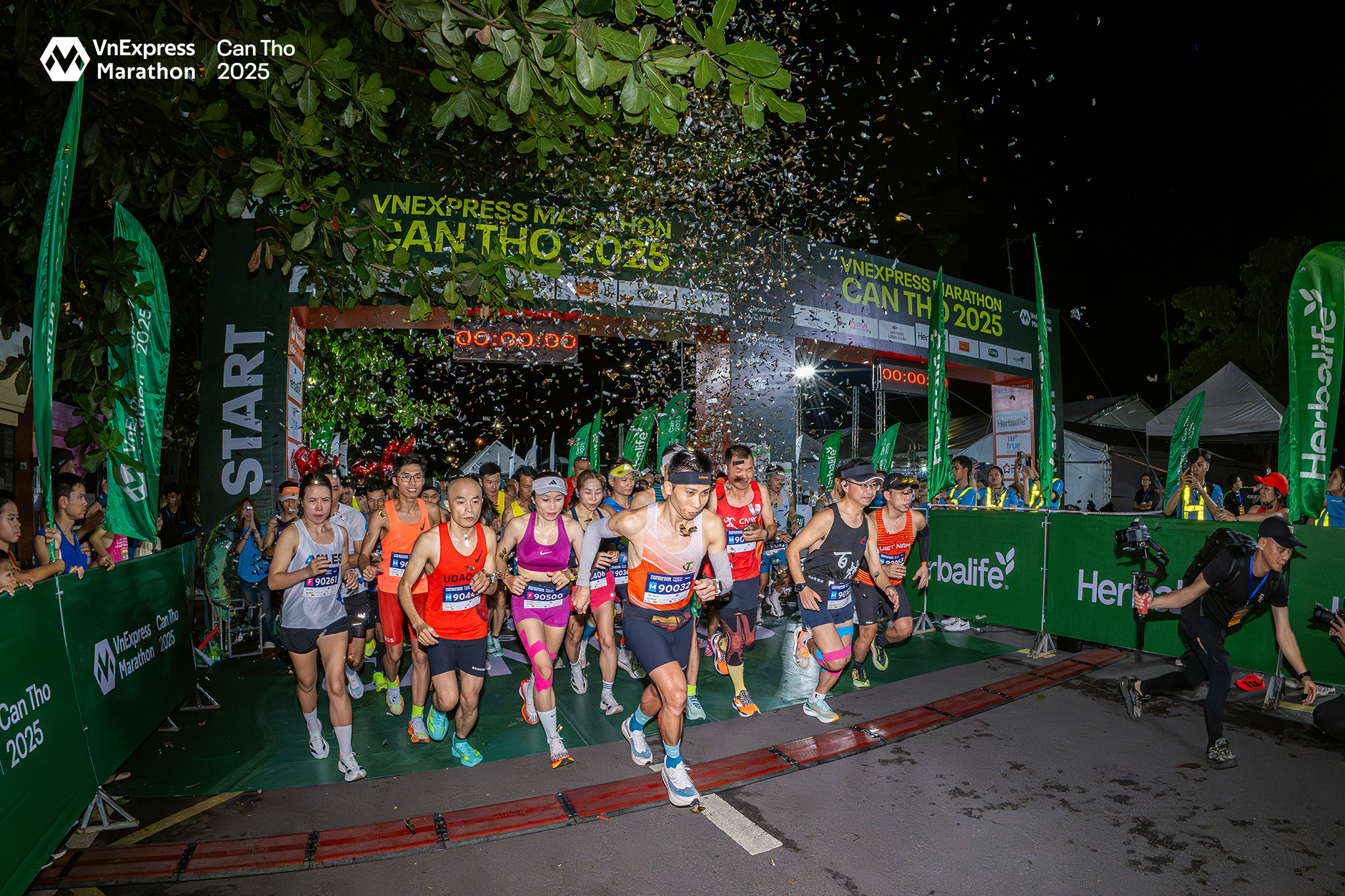 Runners at the start of the 42km VnExpress Marathon Can Tho 2025. Photo: VnExpress Marathon |