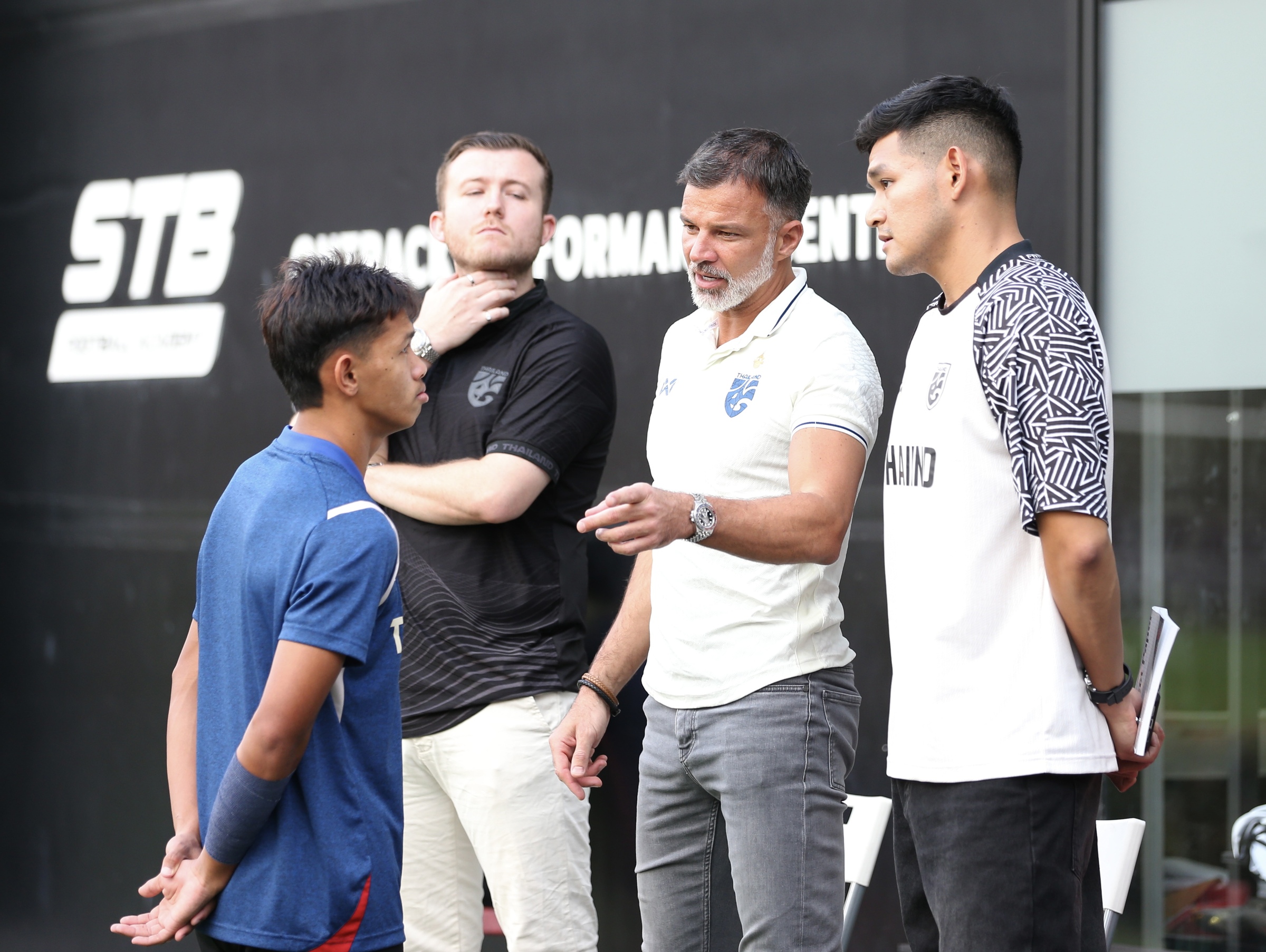 Hudson visited the STB Academy in Bangkok yesterday afternoon to observe the U22 squad's training session and offer encouragement. After providing technical feedback, the English coach spent about four minutes boosting the players' morale. He recounted a past final where his team, despite being the underdog, emerged victorious. "The most important lesson I learned is that physical fitness and tactics are only part of it; the rest lies within yourselves," Hudson stated.