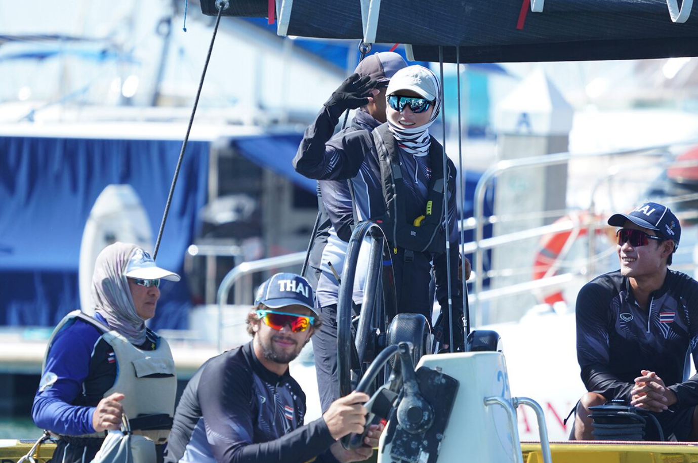 On this crucial competition day, the queen and members of the Thai team boarded keelboat SSL47 number 6 to compete in two races, the 6th and 7th, in the waters of the Gulf of Thailand. They competed against teams from Vietnam, Philippines, Malaysia, and Myanmar. This marked the debut of the keelboat event in the SEA Games program.
