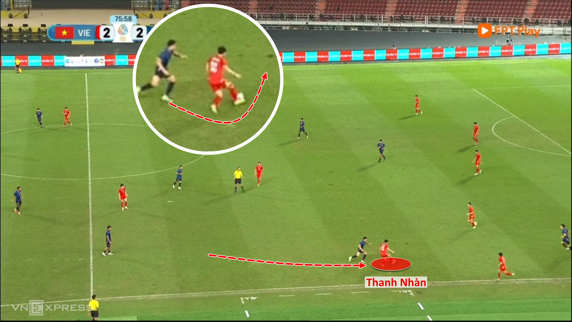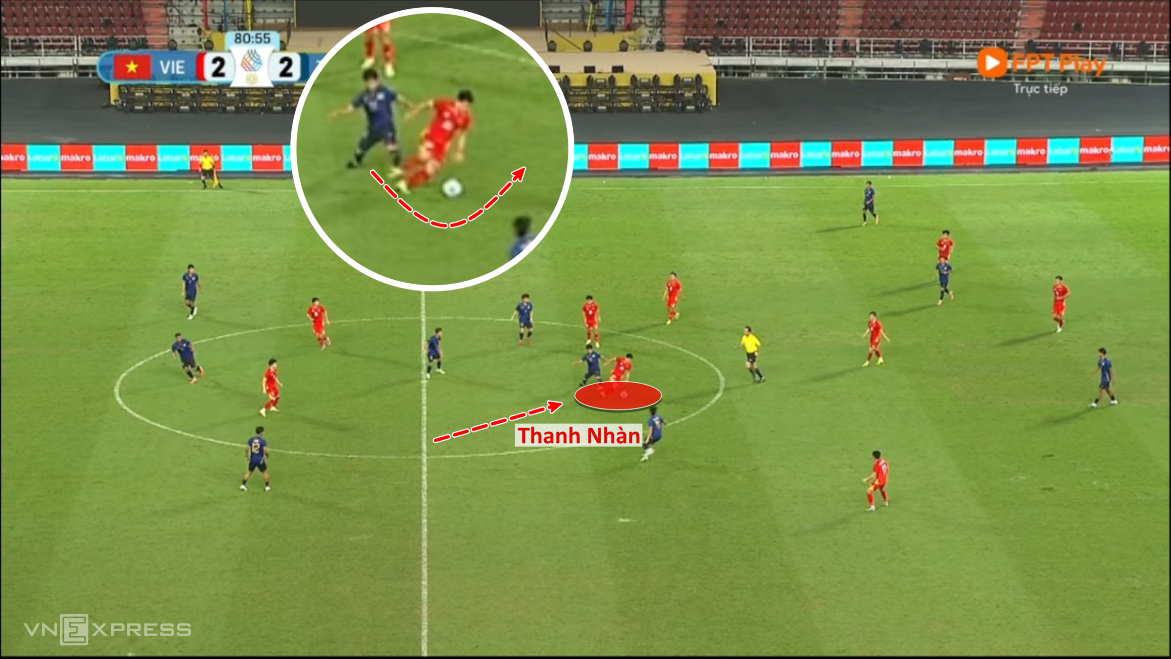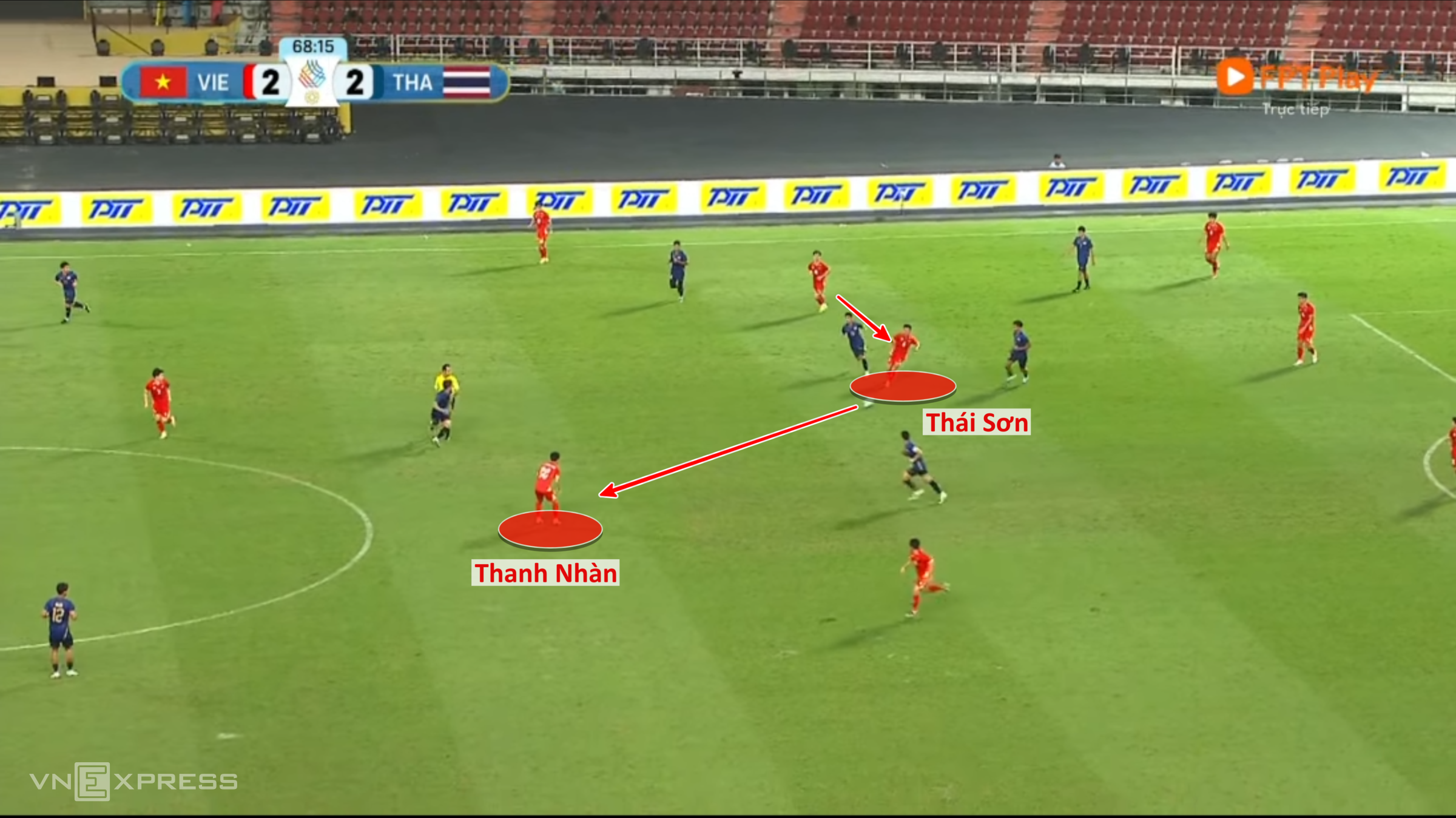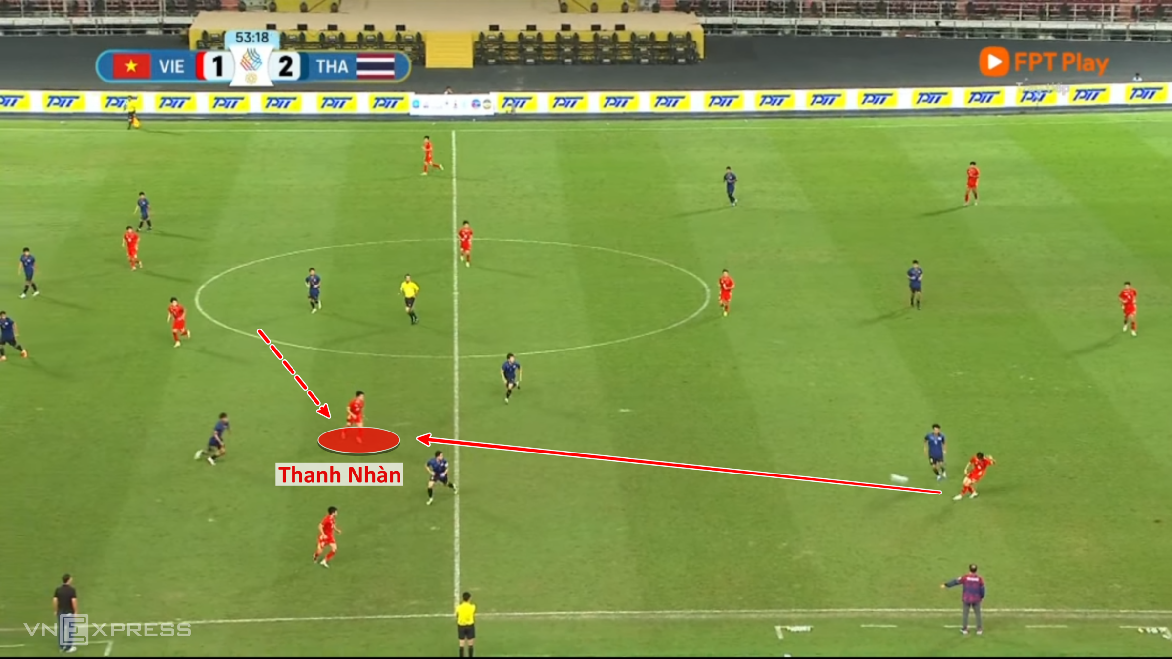 It is unclear whether coach Kim intended to change the team's possession-based play in the second half. However, with the introduction of two new attacking players, Thanh Nhan and Van Thuan, their qualities opened up a new direction for Vietnam.