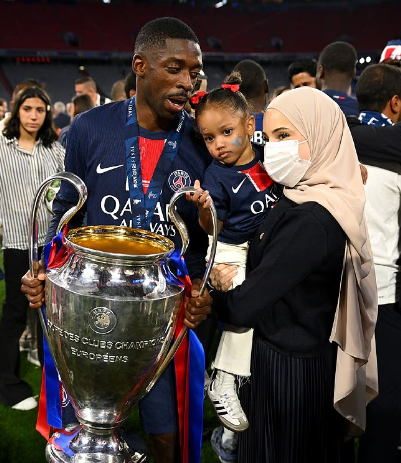 Ousmane Dembele with his wife Rima Edbouche and their daughter celebrating the 2024-2025 Champions League title. Photo: UEFA