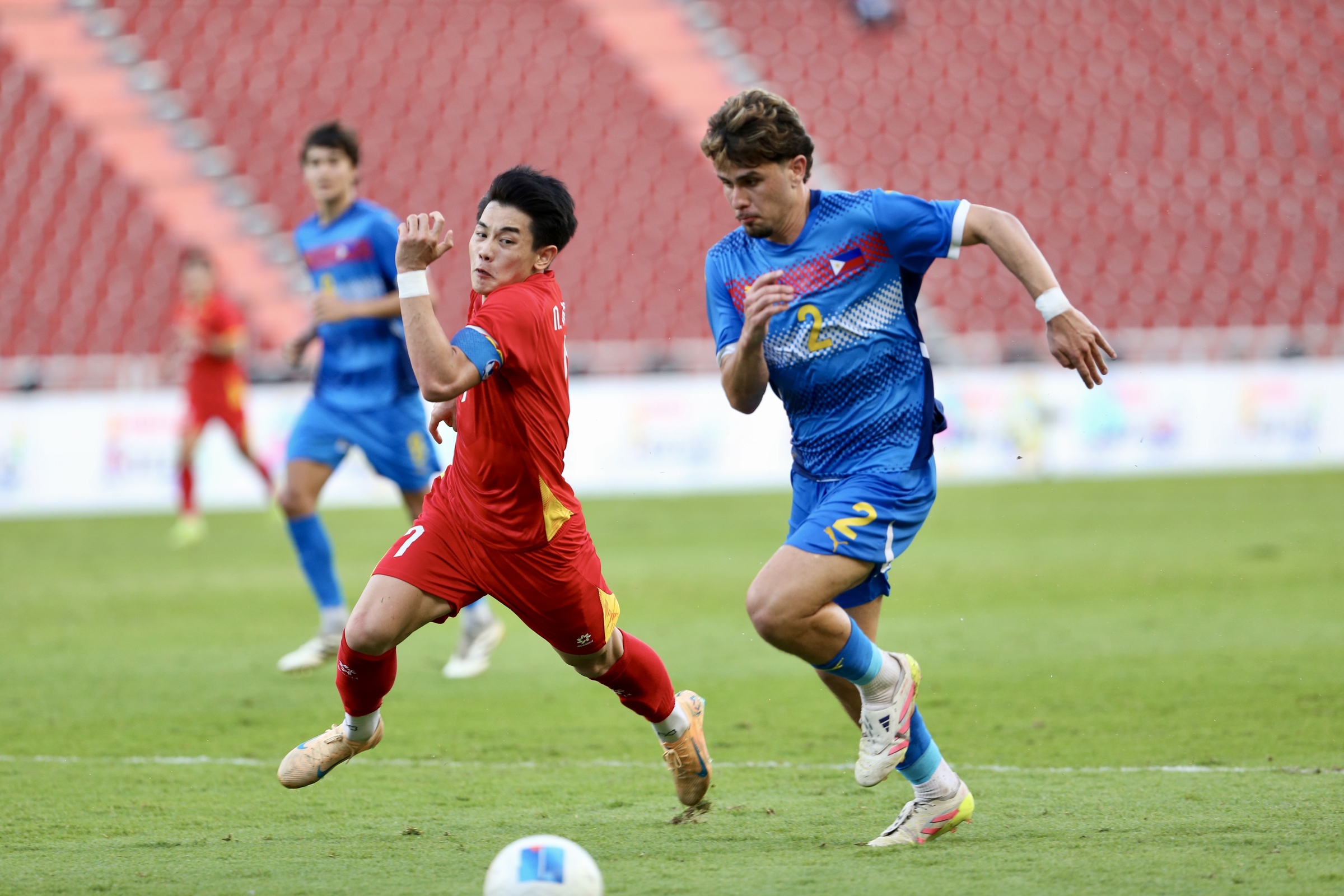 In the 89th minute, substitute midfielder Le Van Thuan, who entered the game in the 70th minute, threaded a pass down the left wing to Nguyen Dinh Bac. Using his speed, Dinh Bac bypassed Noah Leddel. After a few touches, the forward born in 2004 laid the ball off for Nguyen Phi Hoang to deliver a cross to the near post. Van Thuan arrived just in time, heading the ball, which deflected off a Philippines player and into the net.
