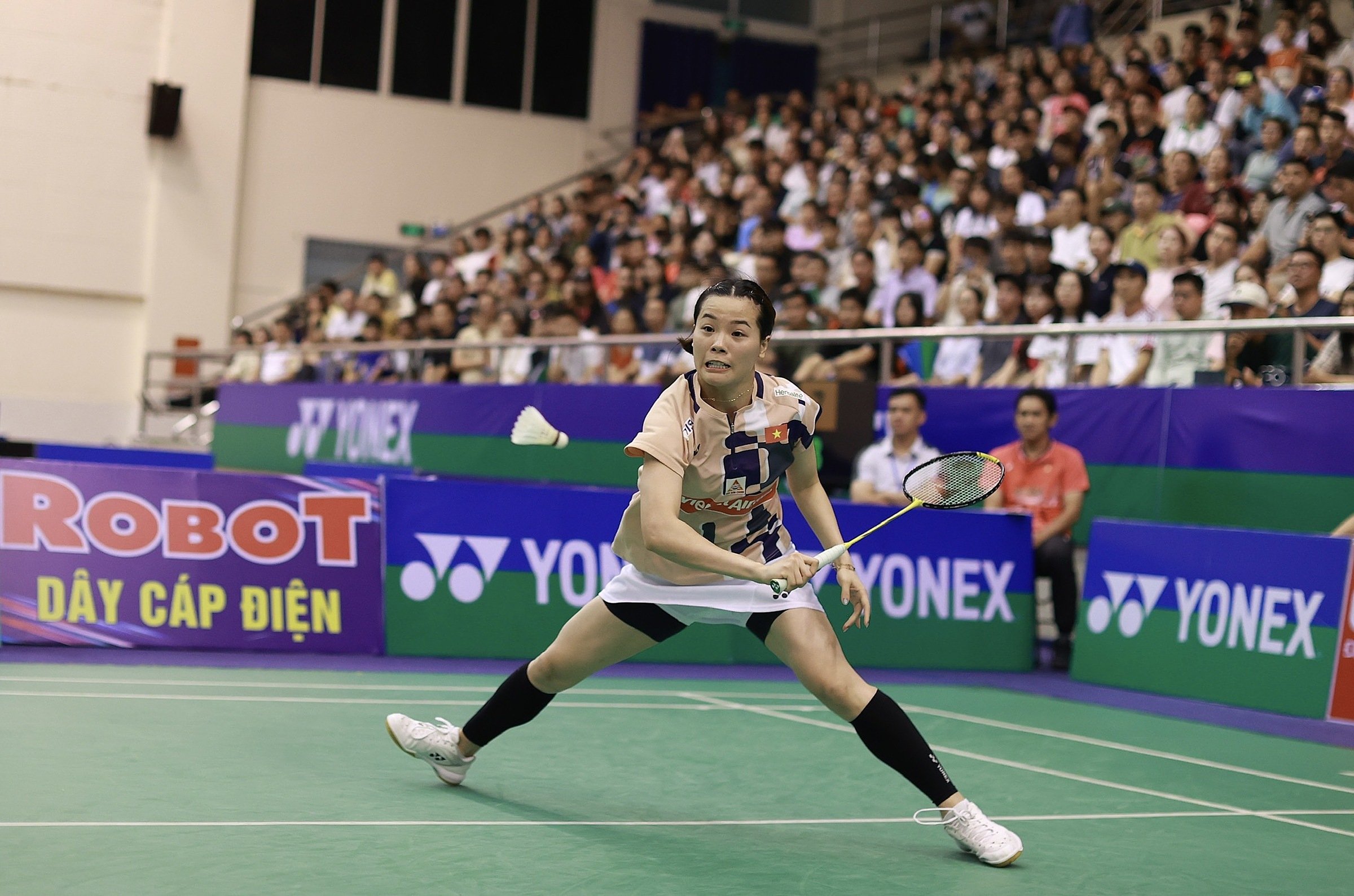 Despite facing a packed Nguyen Du stadium, Cai demonstrated her skill. Her technique, agility, and net play forced Linh into multiple errors. The Chinese player took an early 7-2 lead, extending it to 14-5.