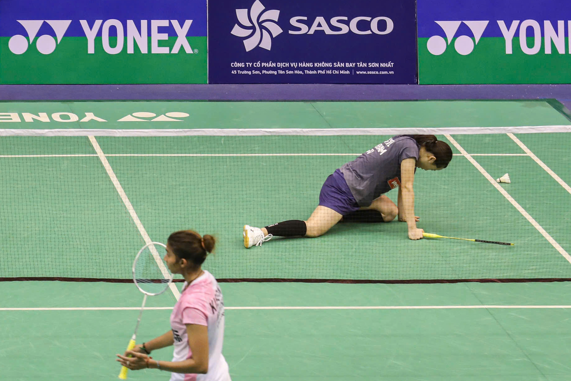 Linh started slowly, hitting the shuttlecock out of bounds three times to gift her opponent an early 5-2 lead. While Kisona moved nimbly, the home favorite appeared sluggish and hesitant in her shots.