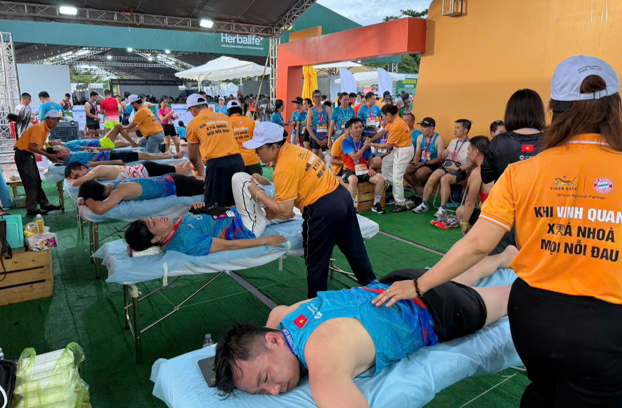 Many runners praised the experience. Tran Nghia, an amateur runner from Ho Chi Minh City, said the warmth of the oil combined with the professional massage helped his muscles relax, boosting his confidence before the race. For Le Chi (Can Tho), the post-race stretching helped her quickly regain comfort and return to her daily routine.