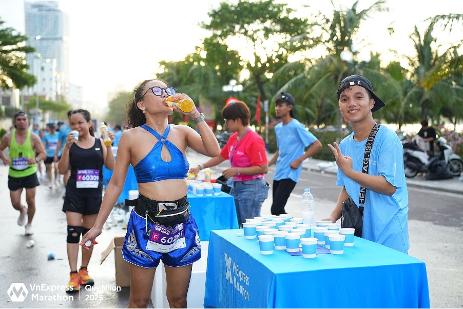 According to the American College of Sports Medicine, sodium intake should be 500–600 mg per hour of running and can increase to 1,000 mg for those who produce salty sweat. VnExpress Marathons provide electrolyte drinks at aid stations to help runners replenish fluids and minerals promptly.