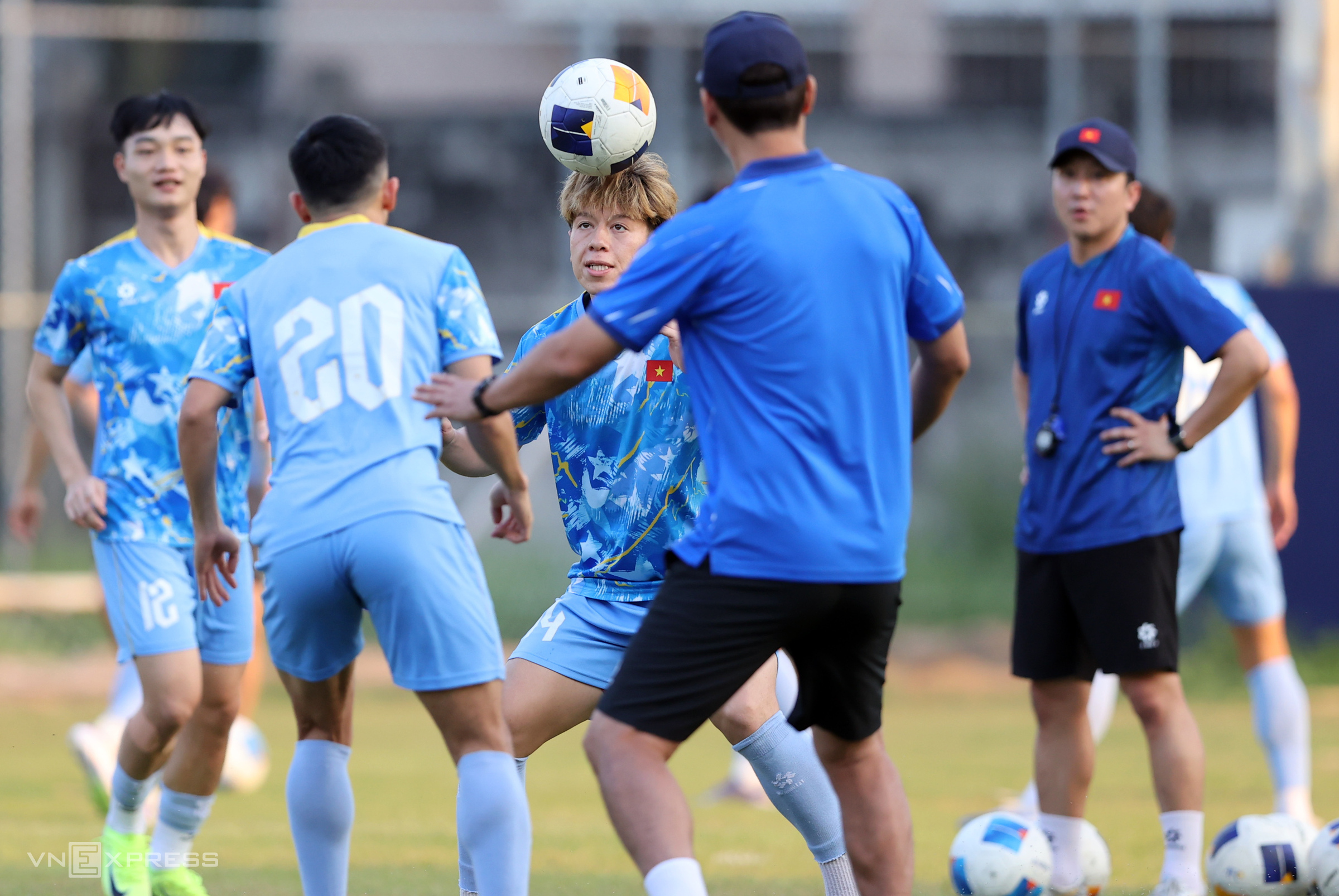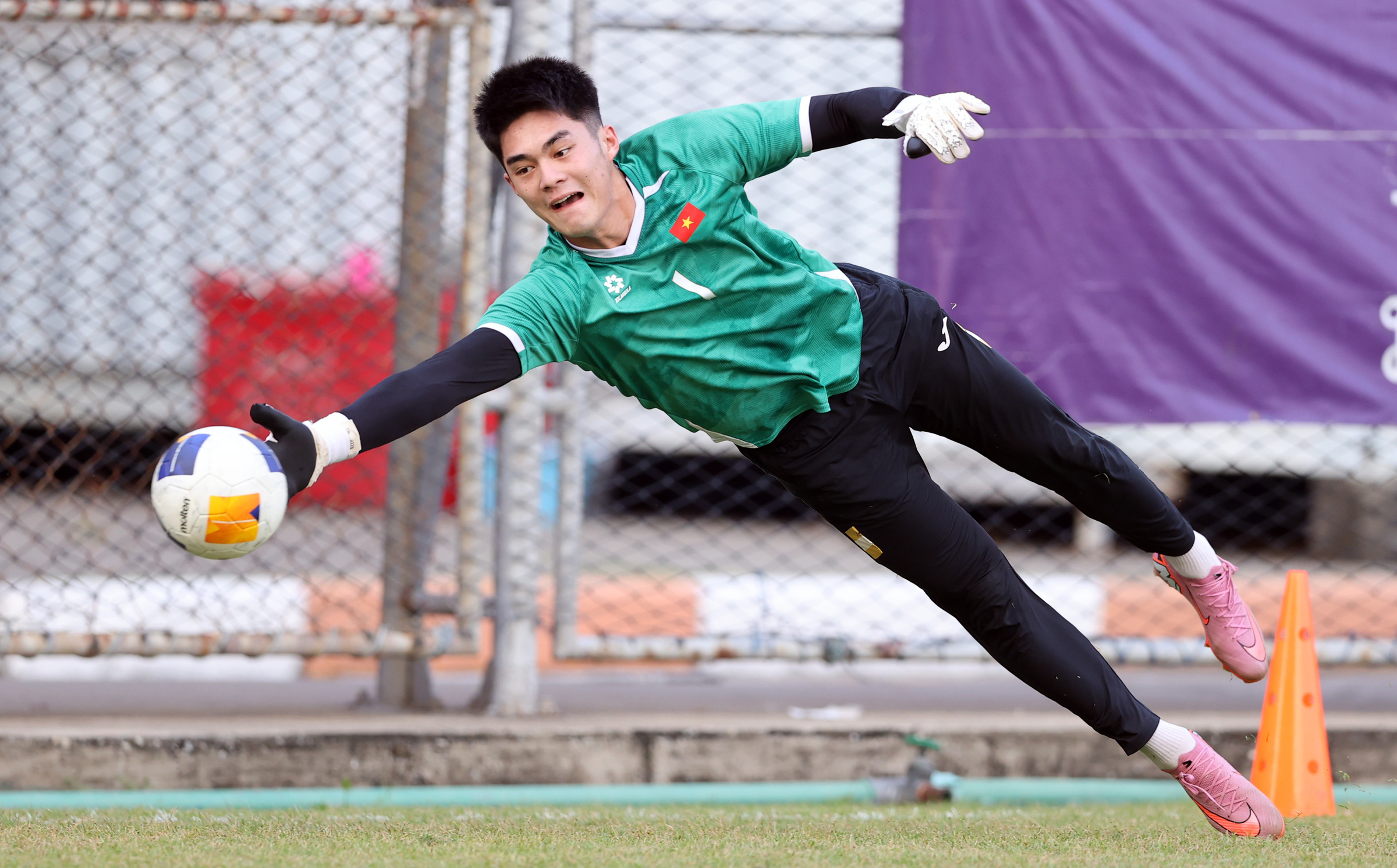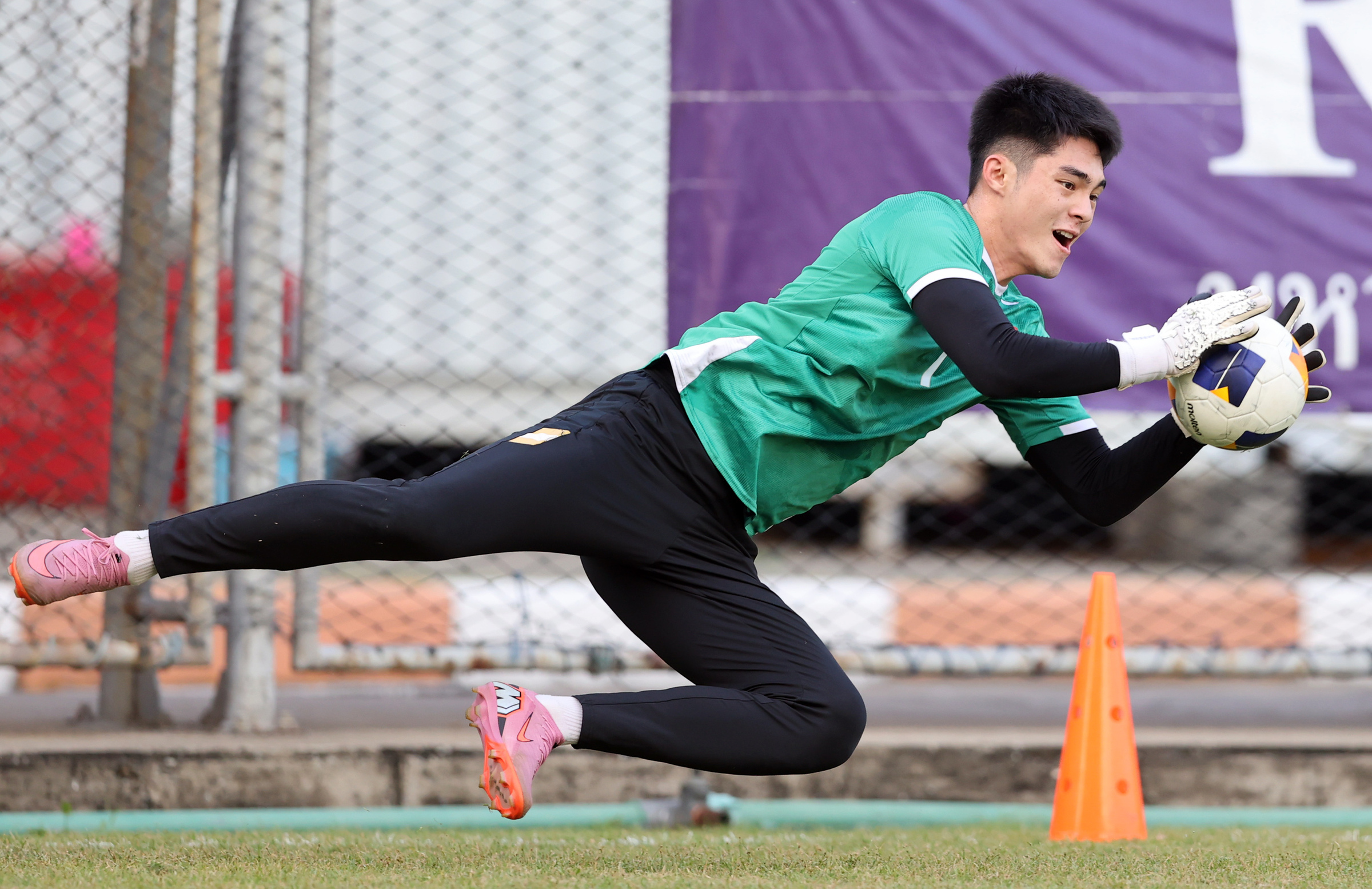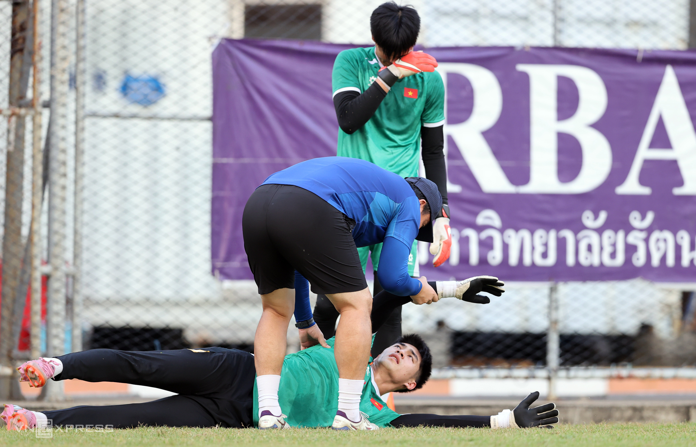 Trung Kien has been diligently coached by assistant coach and Korean legendary goalkeeper Lee Won-jae. Lee has meticulously guided him through even the smallest movements in each training session to help him refine his skills.