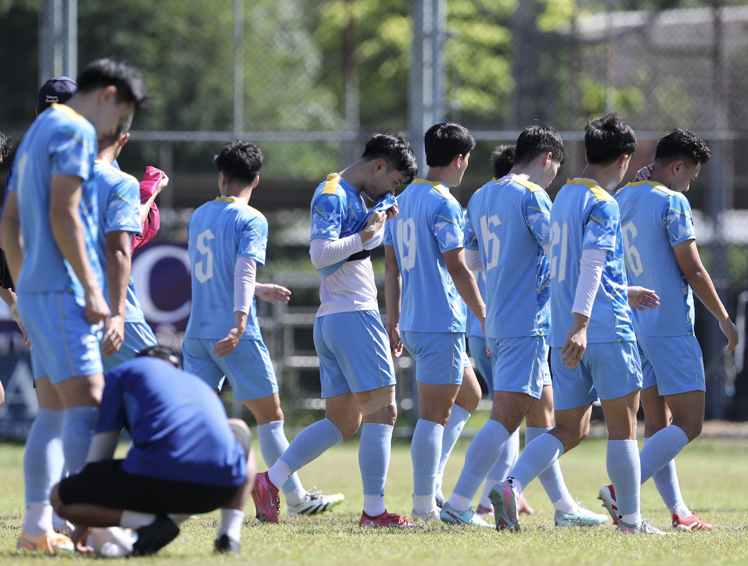 Before the team split for a scrimmage, Coach Kim Sang-sik was stern while reviewing the previous drills. The team has four more training sessions to refine their tactics before their final Group B encounter against Malaysia on 11/12.