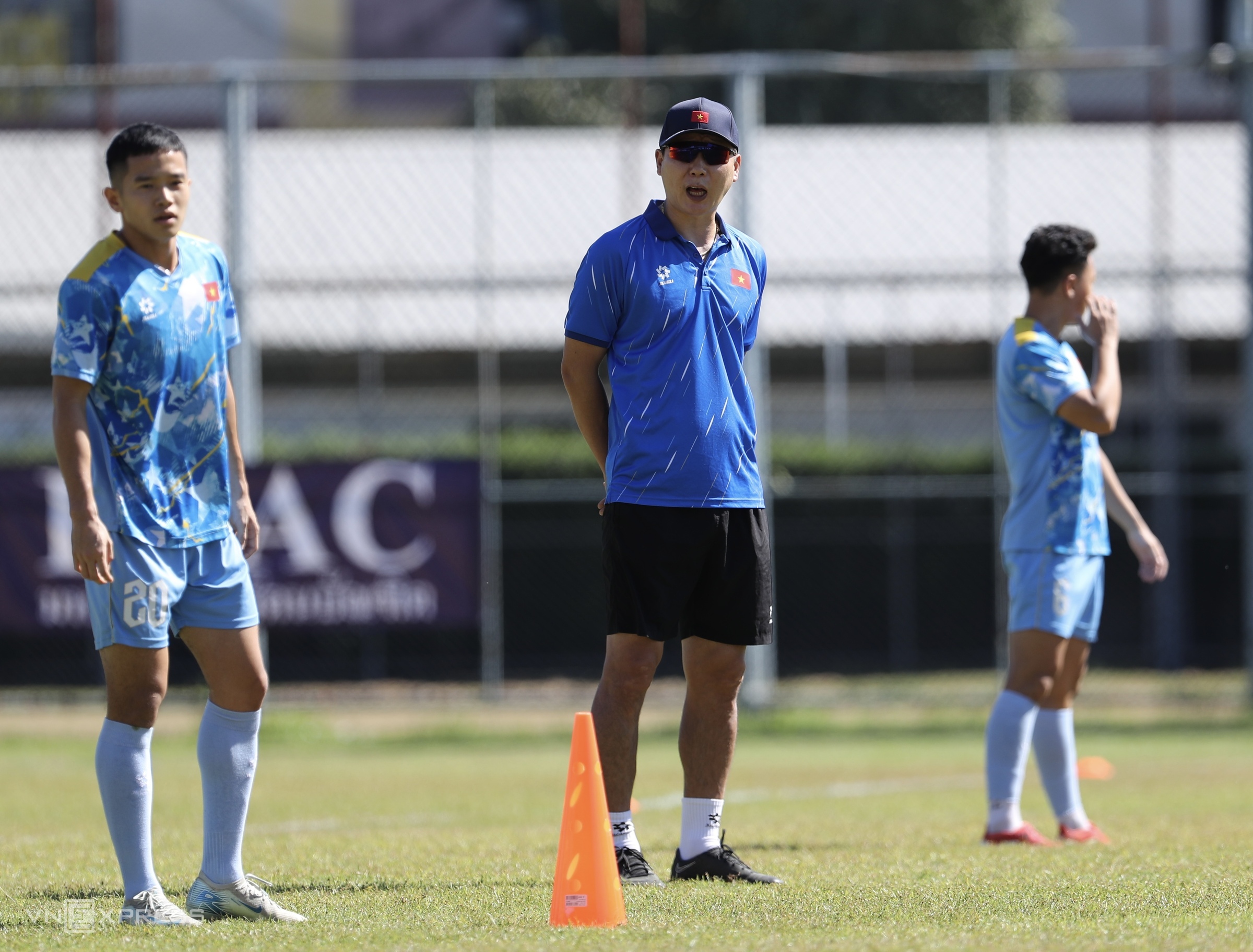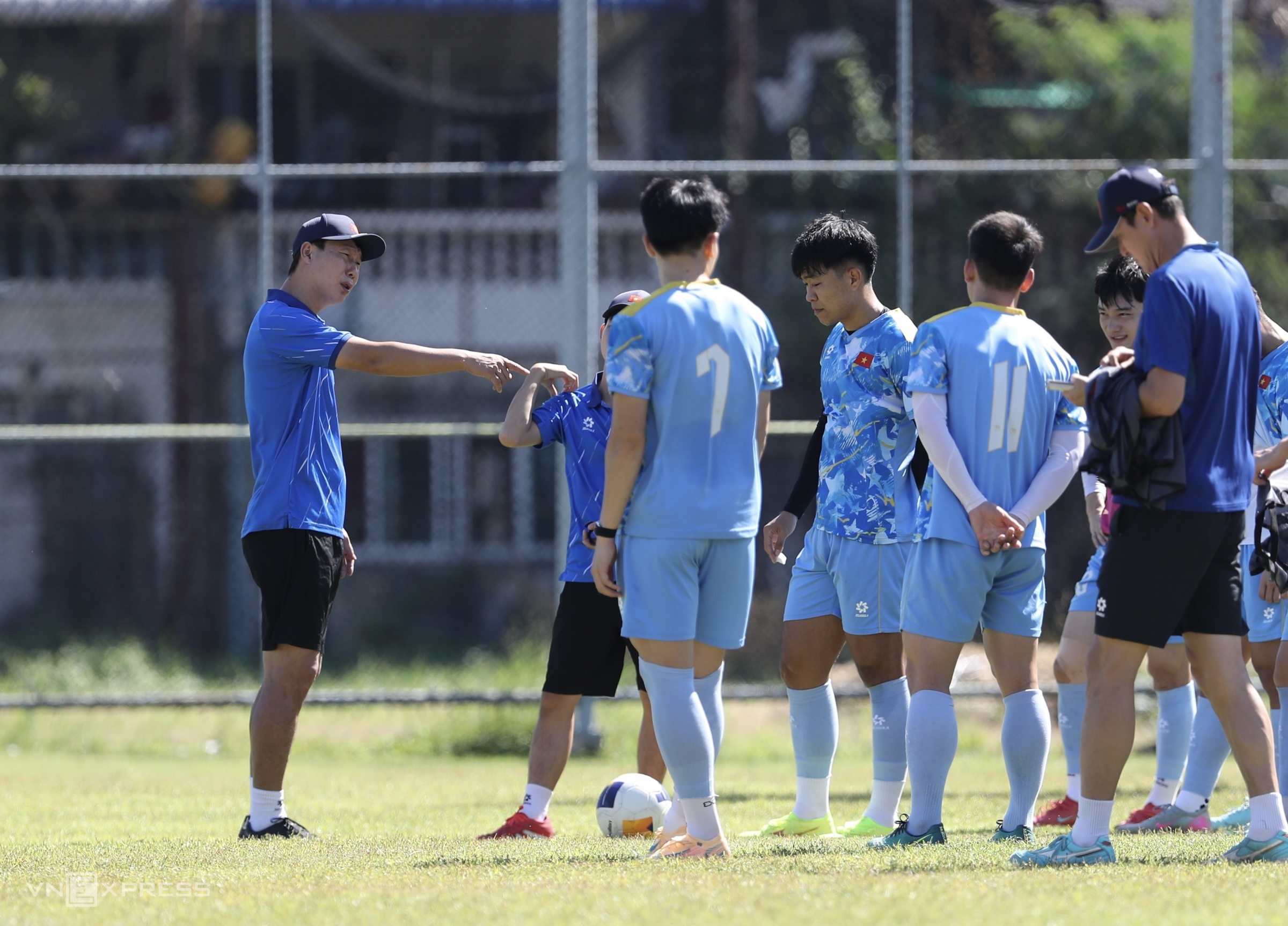 U22 Vietnam's training session commenced at 10:30 AM at RABC University's field. This marked their first morning practice since arriving in Thailand.