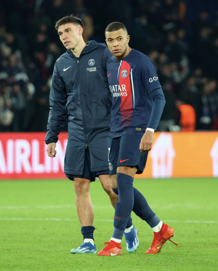 Manuel Ugarte (left) and Kylian Mbappe during their time at PSG. X / PSG_Report