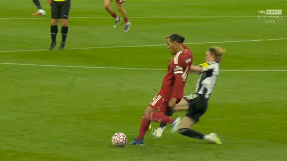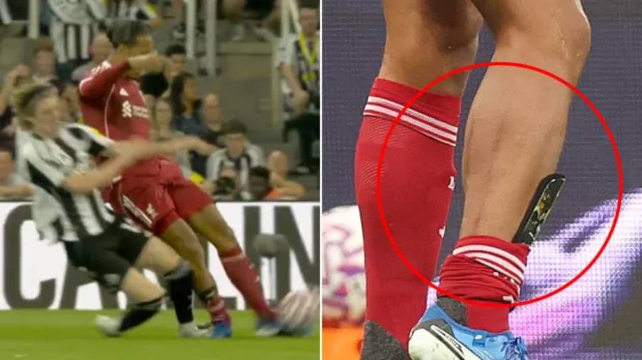 In the 45+3rd minute at St James' Park, Gordon slid into a tackle that became a forceful kick to Van Dijk's shin. The impact was so strong it pulled Van Dijk's sock down to his ankle, leaving two deep imprints. However, the collision only caused superficial damage, and the Liverpool defender played the entire match.