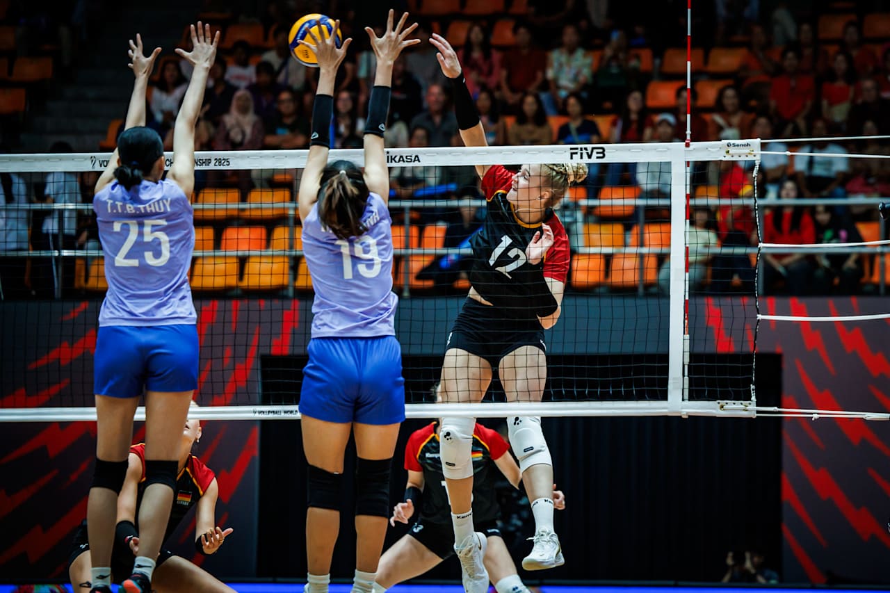 The second set saw Germany continue to dominate with powerful spikes over the Vietnamese block. While Vietnam minimized their first-step errors, they couldn't create opportunities against Germany's towering defense. Germany easily took the lead at 11-5 and 18-8, quickly finishing the set 25-17.