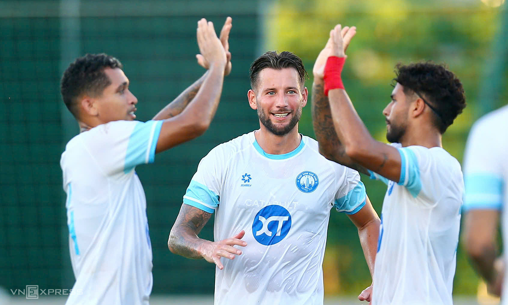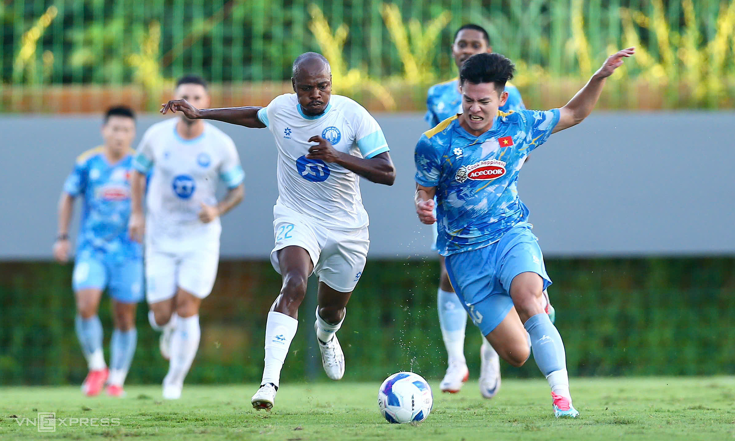 Nam Dinh FC started the match with a lineup composed entirely of foreign-born players. This included new signing Percy Tau, who played in the English Premier League for Brighton during the 2020-2021 season. Towering striker, 2.06 m Kyle Hudlin, started on the bench and entered the game in the second half. These players are either foreign nationals or of mixed heritage, such as defender Kevin Pham Ba.