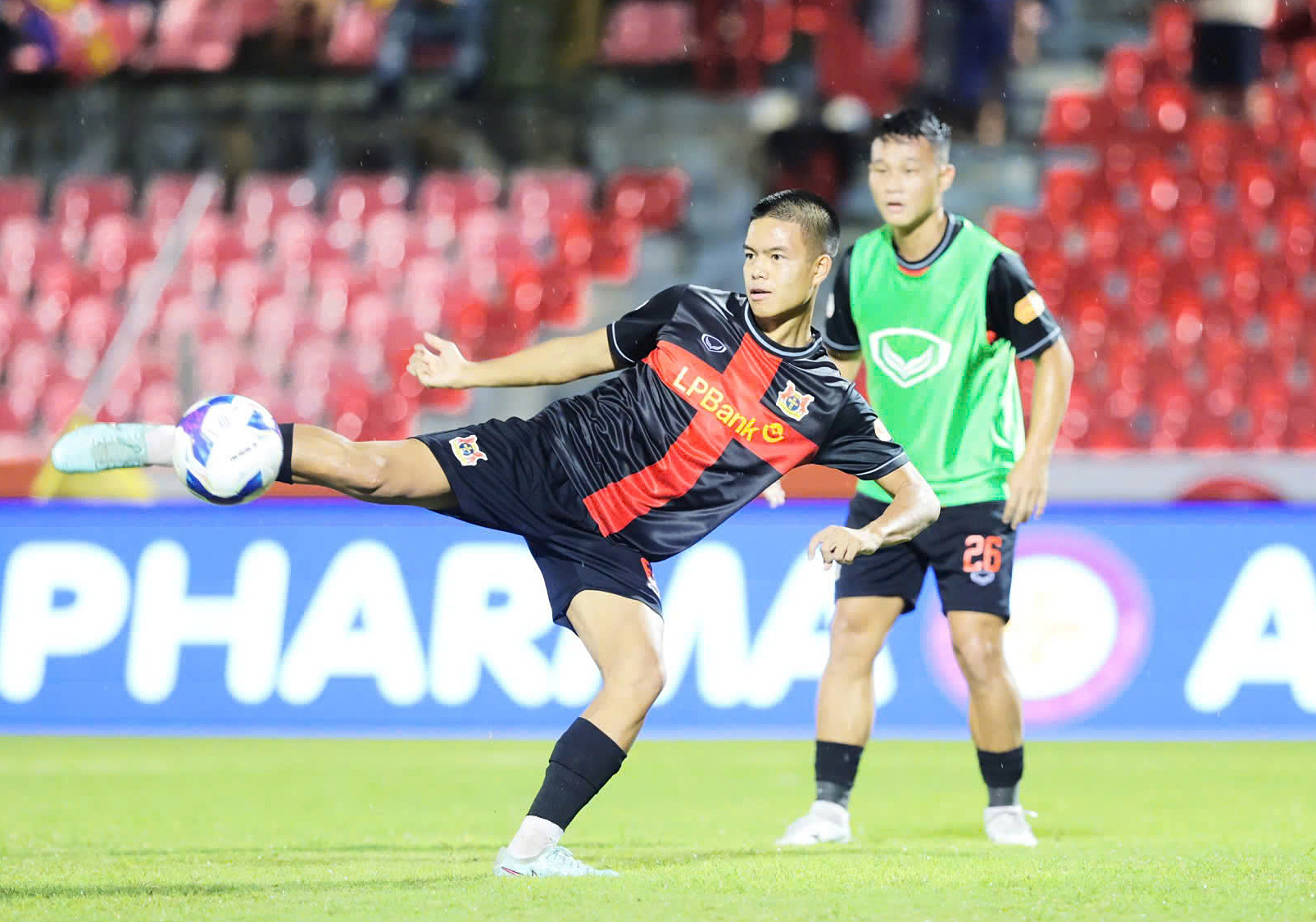Bulgarian-Vietnamese midfielder Tran Thanh Trung warms up with Ninh Binh before their 3-1 victory against Ha Tinh in the first round of the 2025-2026 V-League, at Ha Tinh Stadium on 17/8/2025. Photo: VPF |