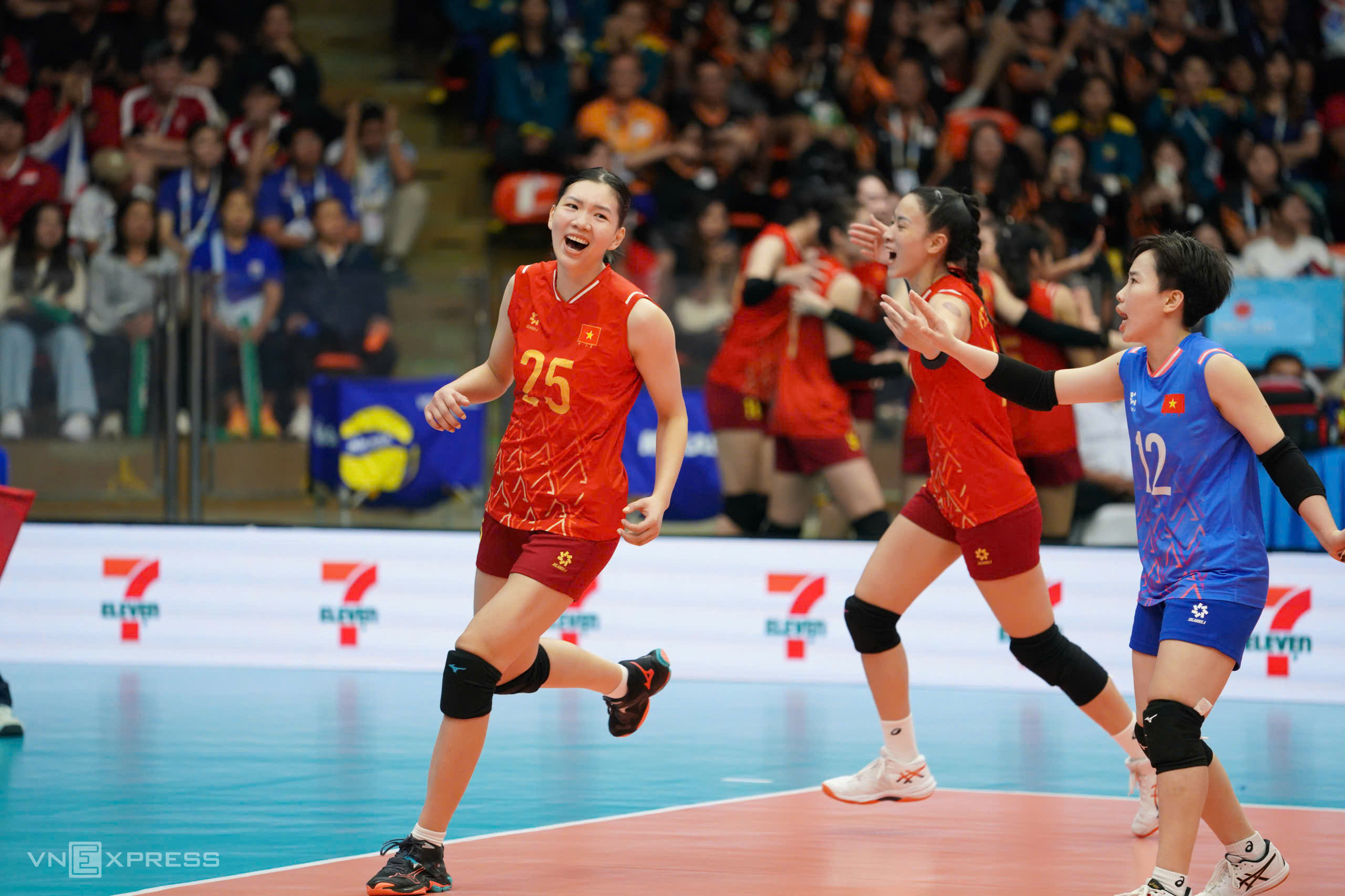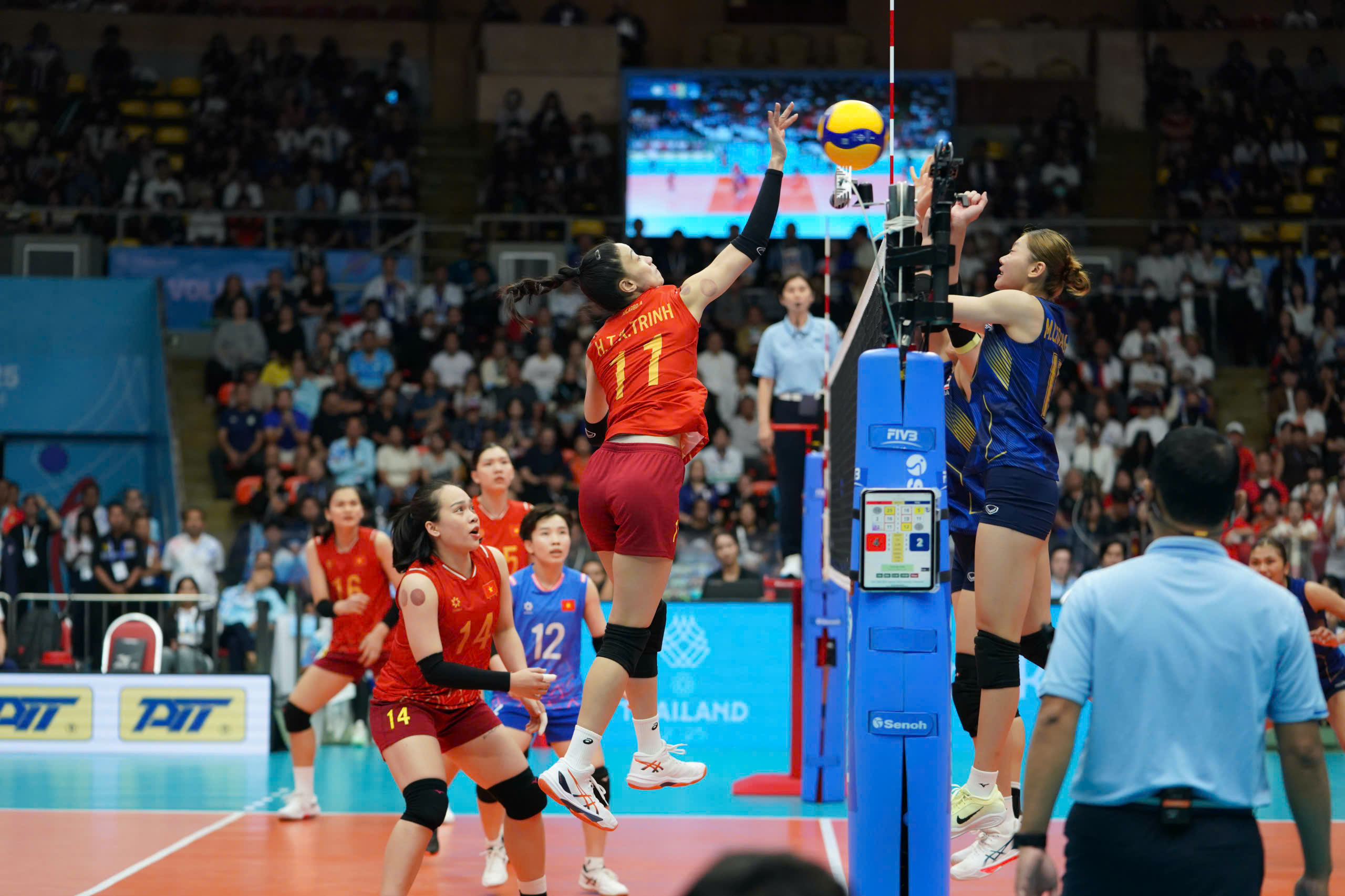 With their backs against the wall, Vietnam played resiliently, fighting for every point in an extended tug-of-war. At a decisive moment, Thanh Thuy's spike from position 4 hit the Thai block and landed in, concluding the fourth set with a 25-23 victory for Vietnam.