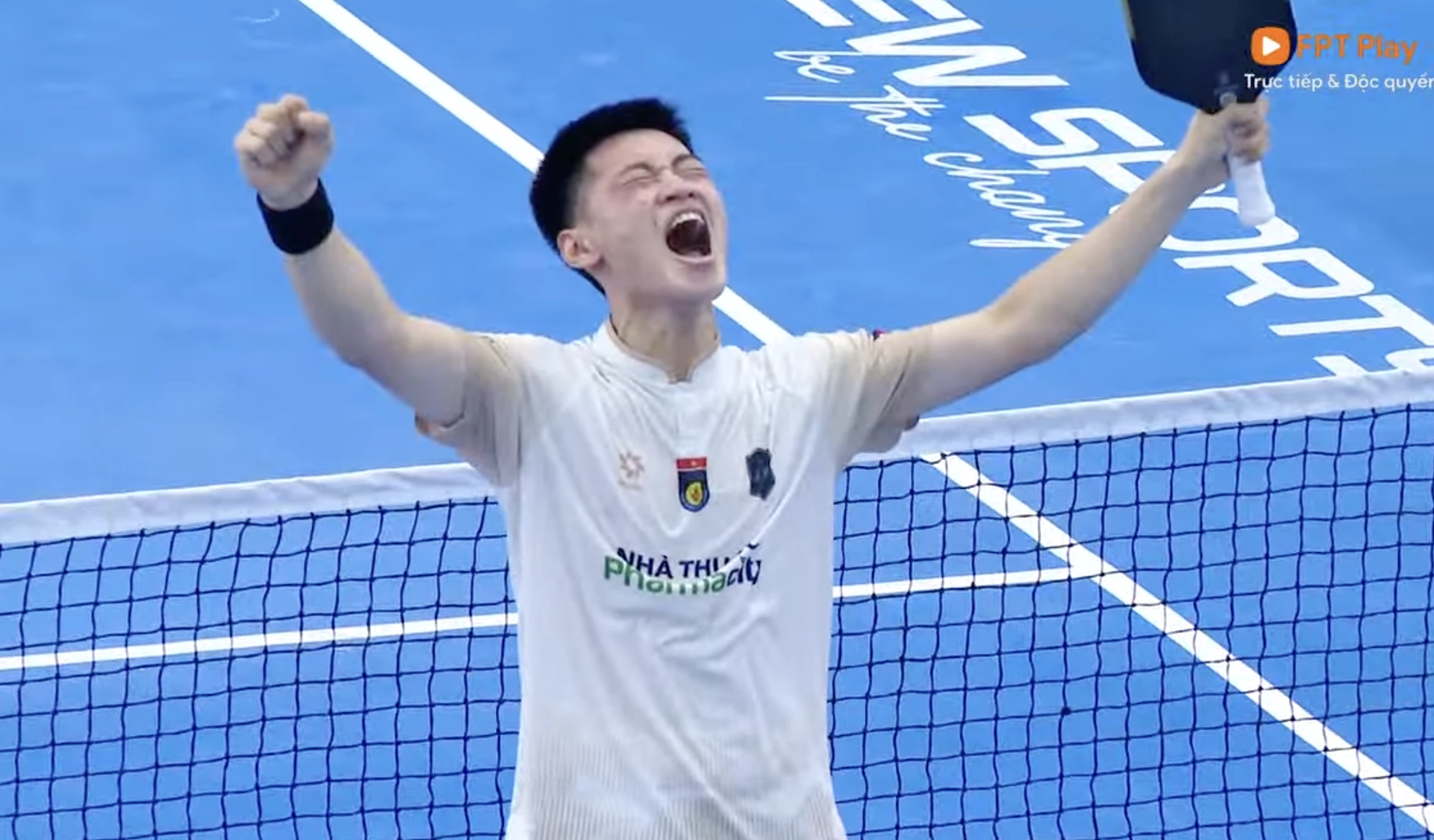 Vinh Hien celebrates his two-one victory over Frederico Staksrud, securing the first spot in the PPA Hanoi Cup final on midday, 4/4. Photo: Screenshot |