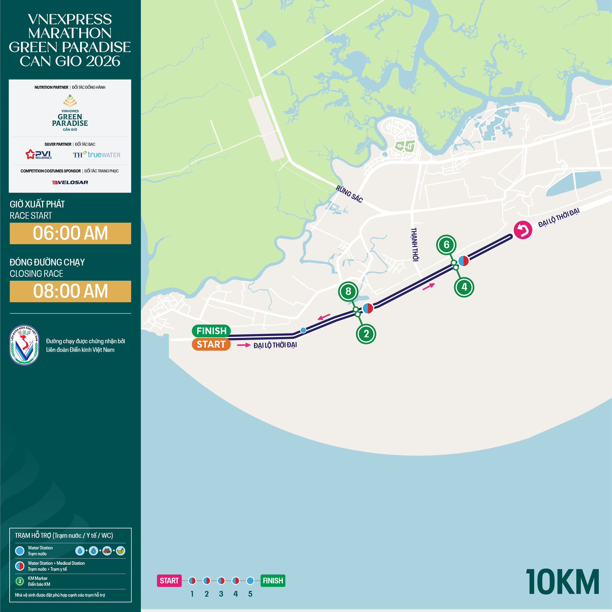 A special feature of these shorter distances is the wide-open coastal space, high density of trees, and natural cool breeze for most of the competition time. Combined with the flat surface, the 5 km and 10 km distances are suitable for new runners, families wanting to enjoy the event's atmosphere, and also provide favorable conditions for runners aiming for personal records.