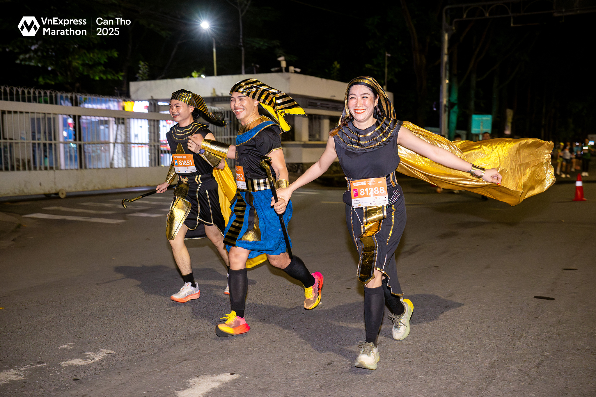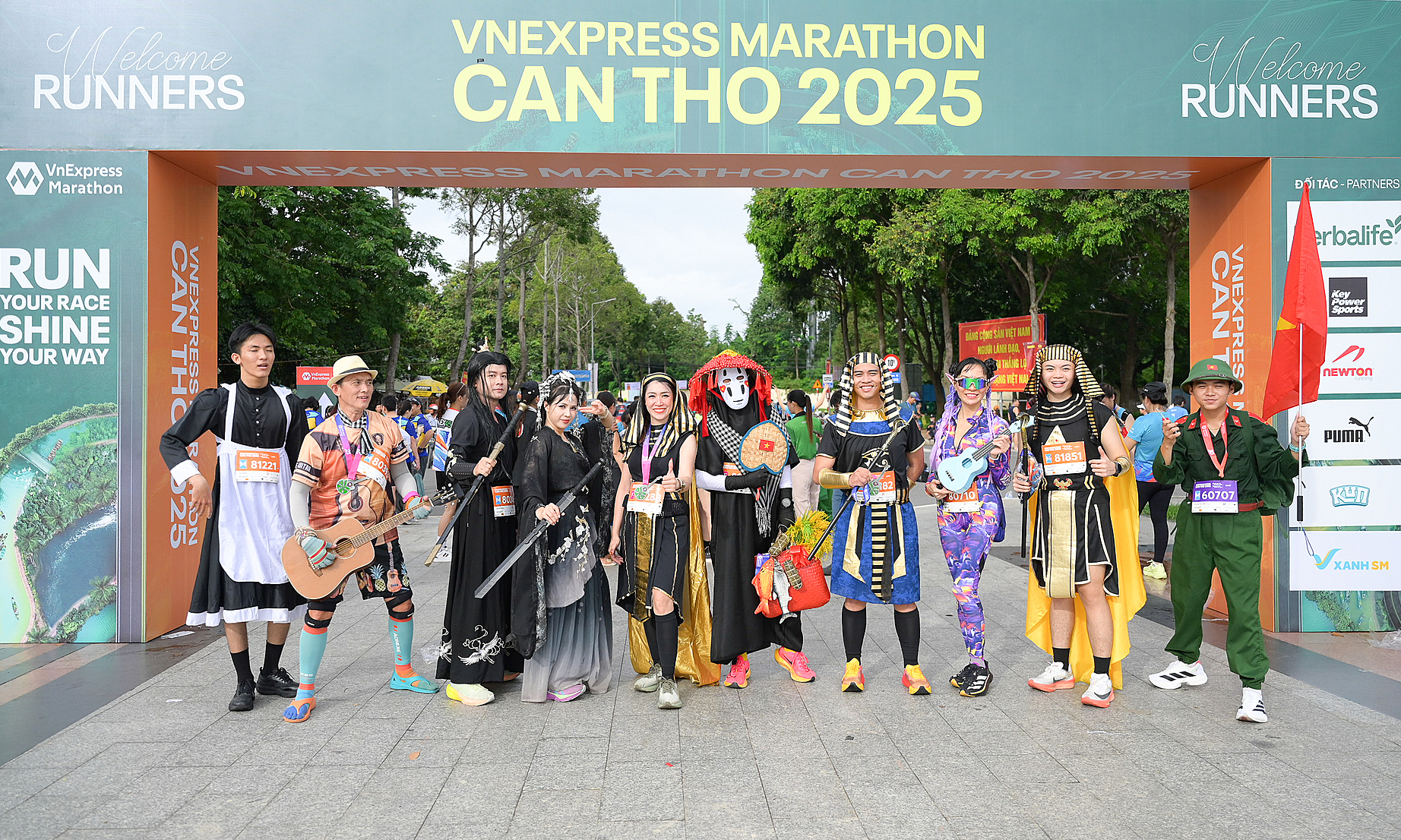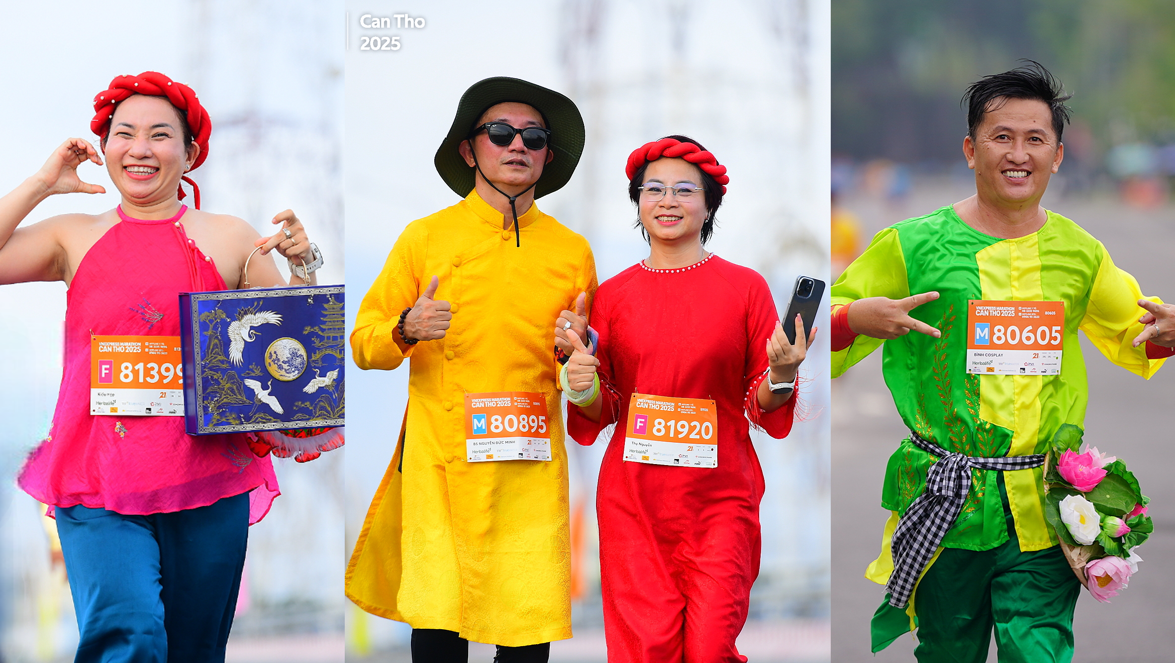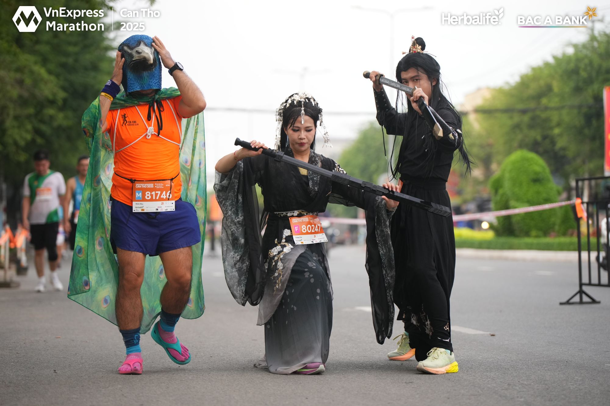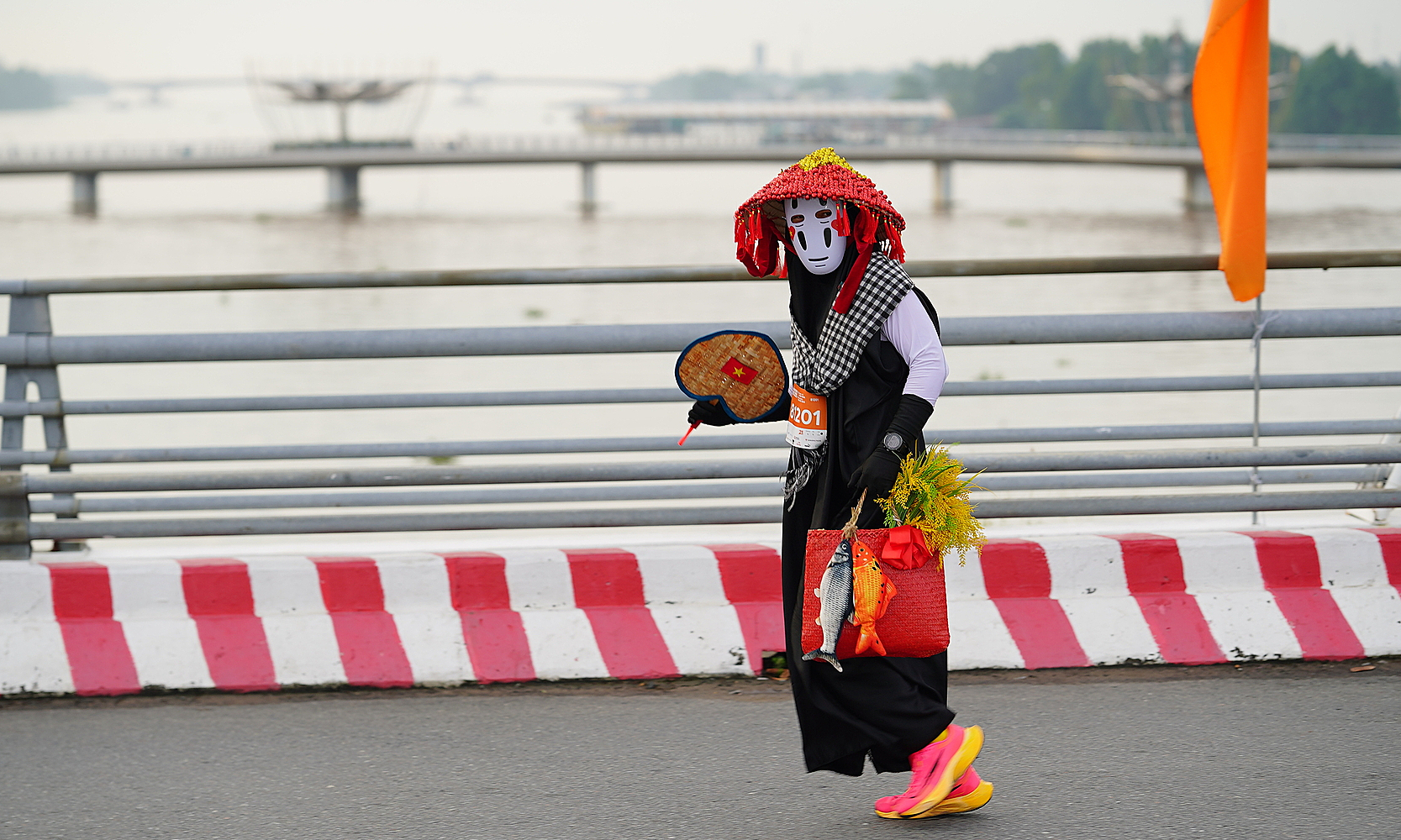 On the morning of 14/9, over 9,000 participants took part in the four-distance race (42, 21, 10, and 5 km) in Can Tho. Instead of aiming for personal bests, some runners chose to express themselves through unique and unusual costumes.