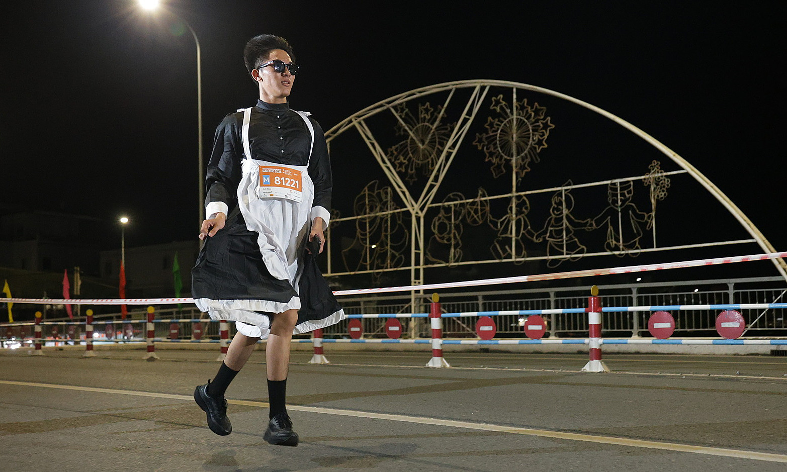Runner Quoc Loi cosplayed as a maid. He participated in the 21 km race and was seen here running across Ninh Kieu Bridge.