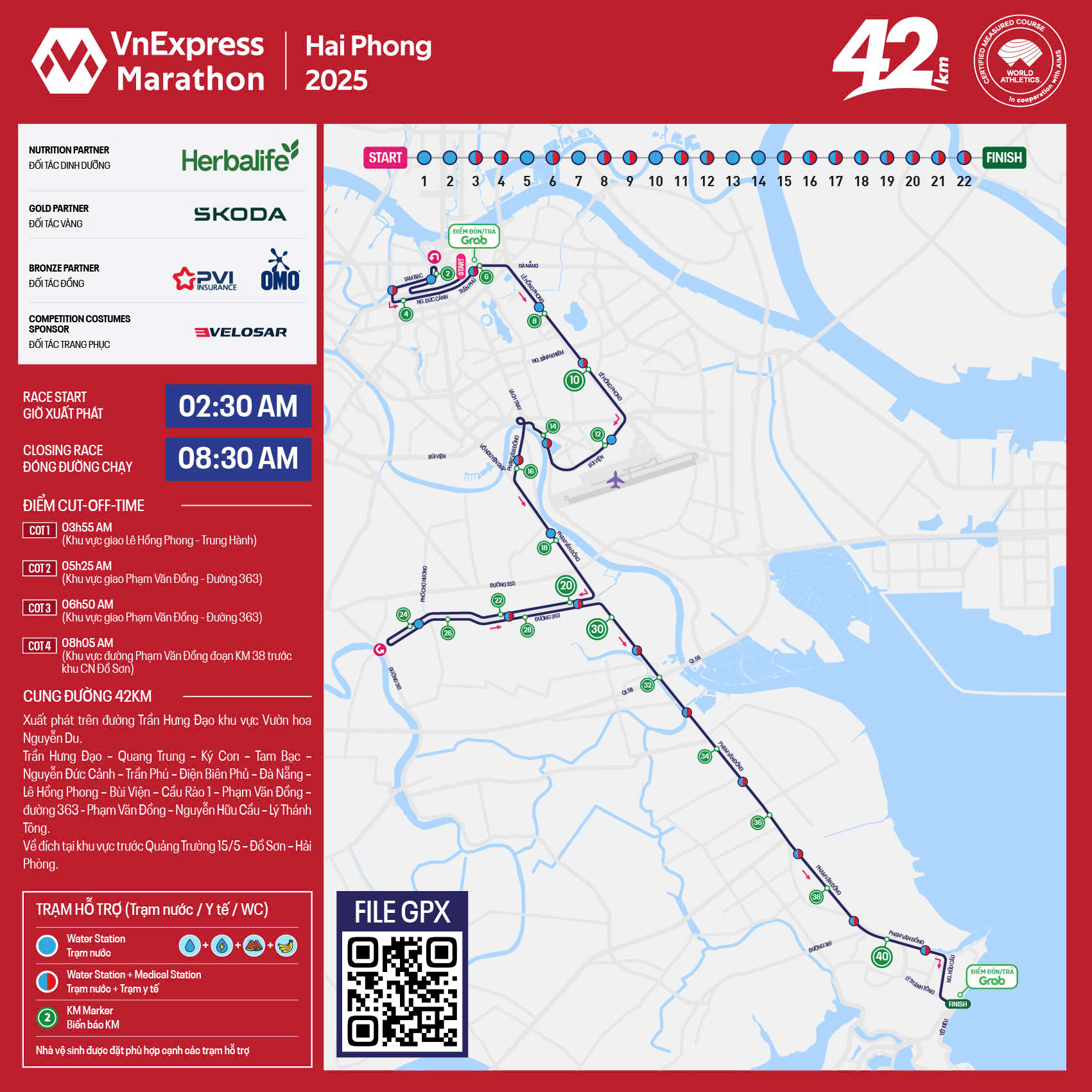 "Many roads on the 42km course are important traffic routes in Hai Phong. Closing the race course early (before 8:30 h) demonstrates the event's commitment to quickly restoring clear traffic flow in the city, minimizing disruption to residents' morning routines," a representative from the organizing committee stated.
