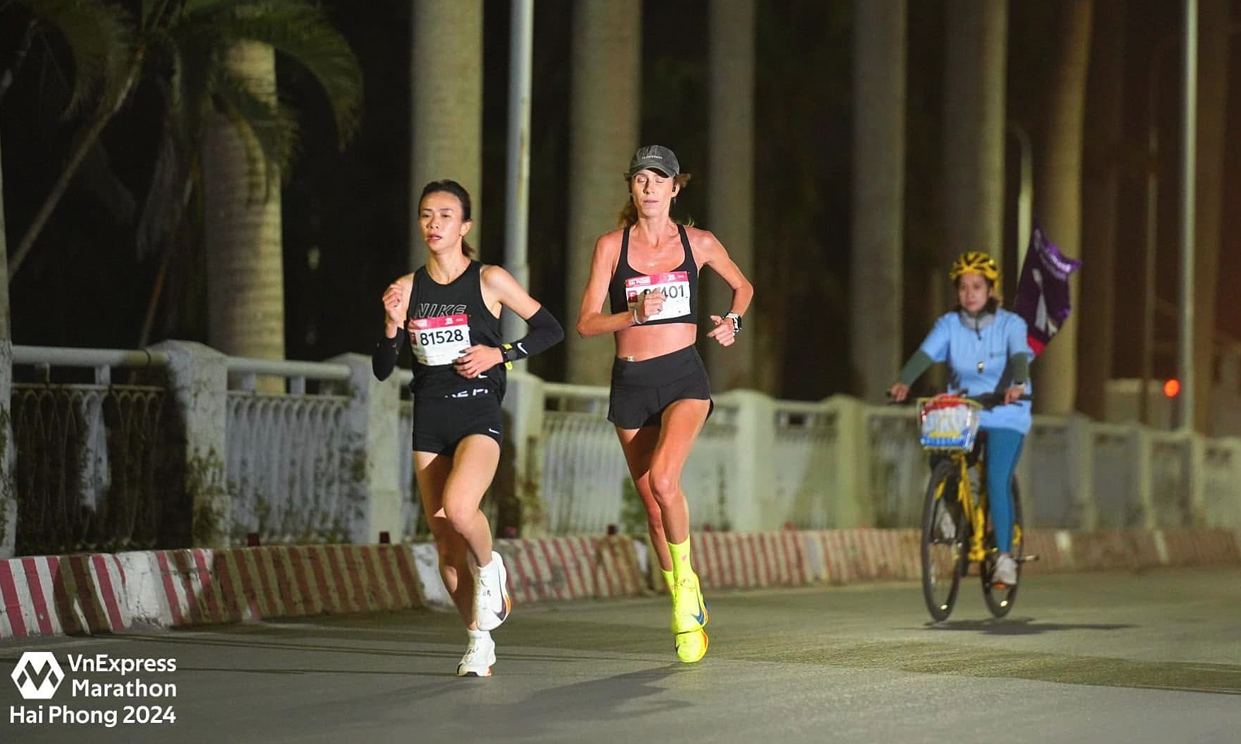 Doan Thu Hang competes with American runner Mary Brooke Connarcher at VnExpress Marathon Hai Phong 2024. *VnExpress Marathon*. |