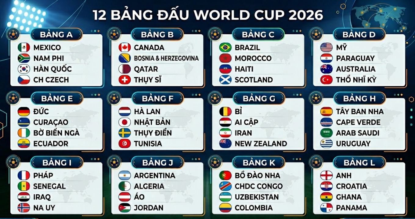 Due to the tournament's North American location, many matches will air during late night or early morning hours in Hanoi, specifically from 11 p.m. the previous day to 11 a.m. the next day. The opening match, featuring Mexico against South Africa, is scheduled for 2 a.m. on 12/6, Hanoi time.