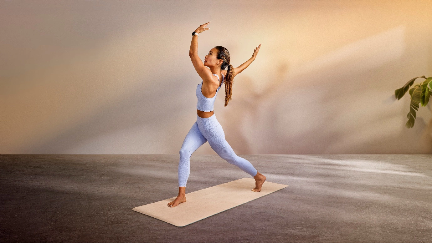 Users practice yoga at home with a Garmin device. Photo: Garmin