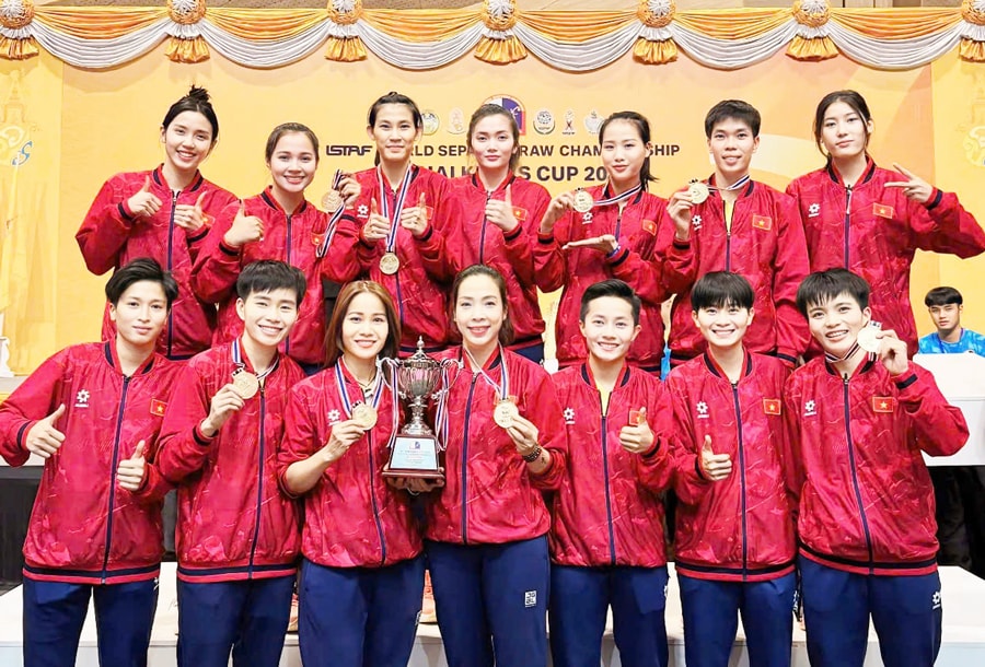 The Vietnamese national women's sepaktakraw 4s team, comprising athletes Nguyen Thi Yen, Nguyen Thi Ngoc Huyen, Tran Thi Ngoc Yen, Nguyen Thi My, Vu Thi Van Anh, and Nguyen Thi Khanh Ly, achieved significant international success in 2025.