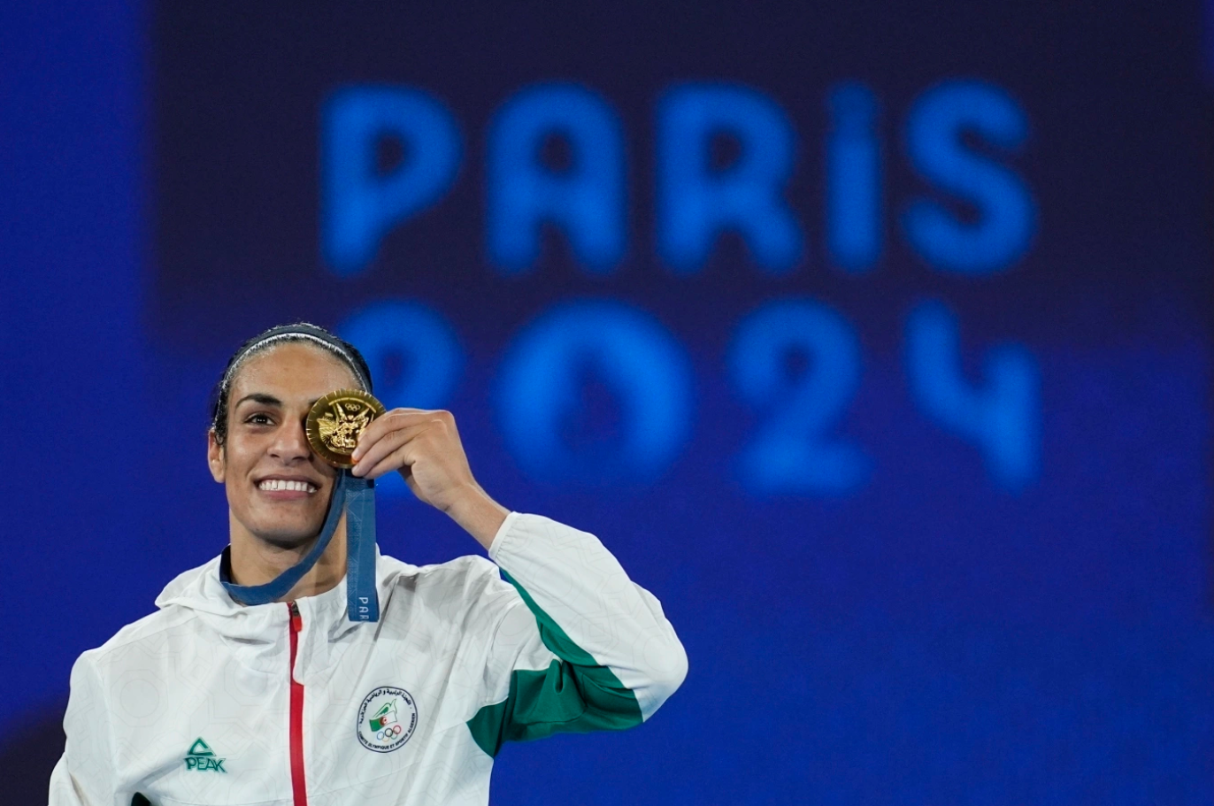 Algerian boxer Imane Khelif poses with her gold medal in the women's 66 kg boxing category at the Paris 2024 Olympics during the award ceremony on 9/8/2024. Photo: AP |