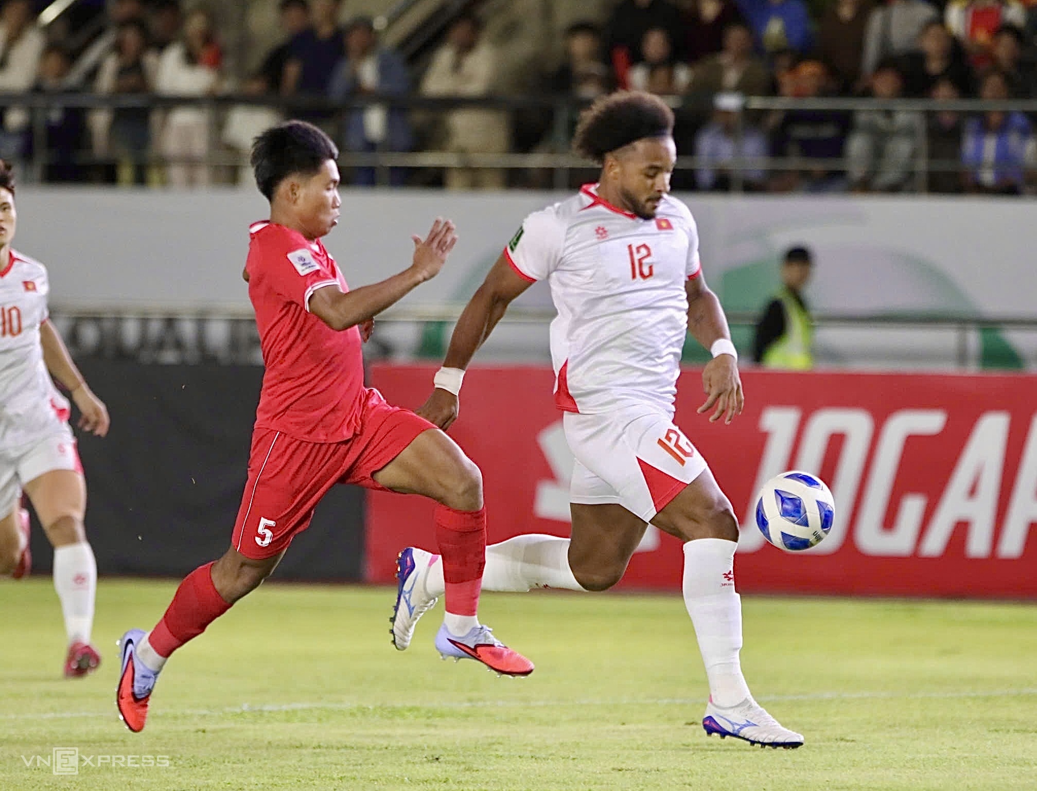 Early in the second half, facing a stagnant attack, Coach Kim Sang-sik brought on the Brazilian-born naturalized striker. He, along with Pham Tuan Hai, Pham Gia Hung, and Nguyen Hai Long, replaced Nguyen Tien Linh, Nguyen Van Vi, Le Van Do, and Le Pham Thanh Long, respectively.