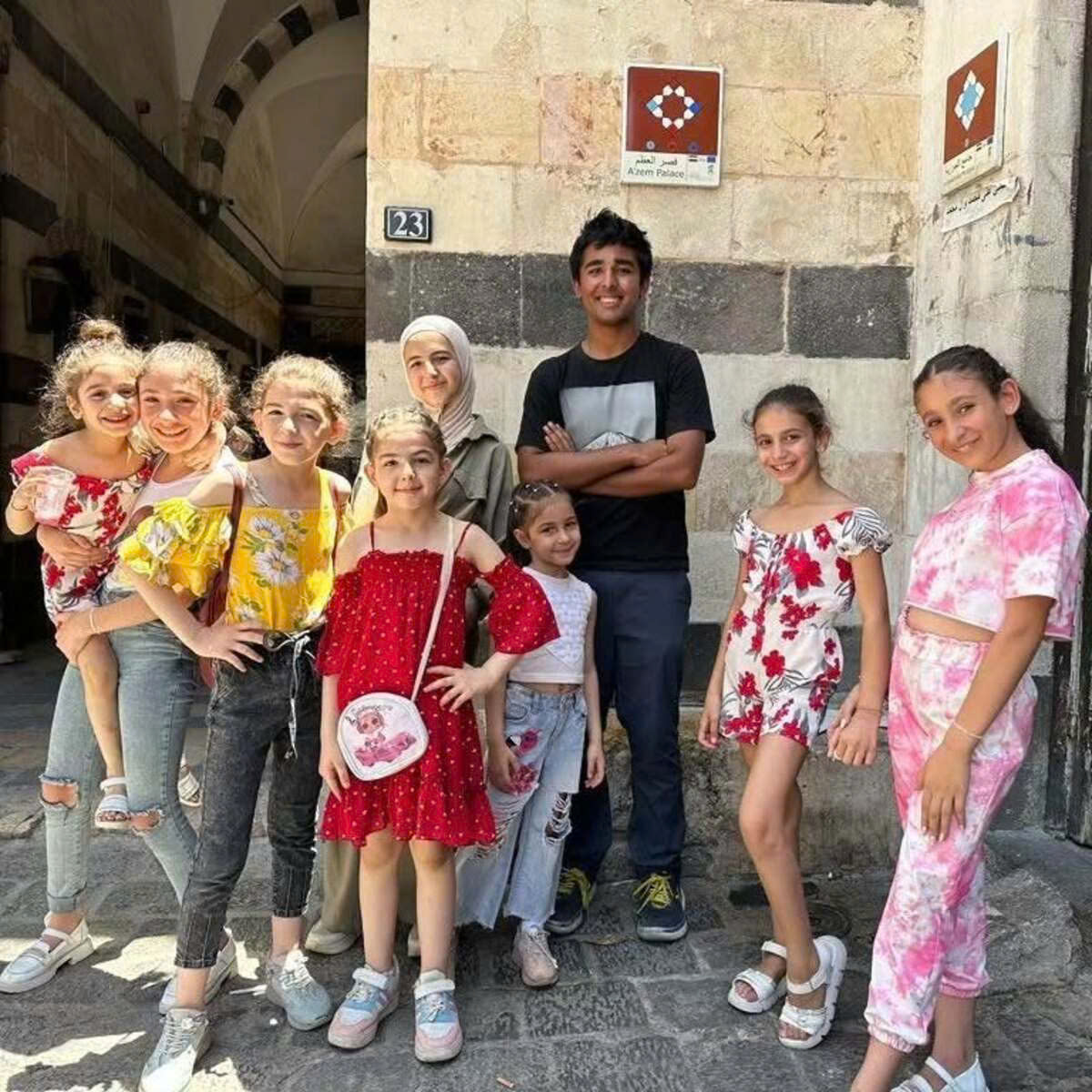Malaviya with Syrian children in July 2024, his 110th country. Photo: Club 100+ Countries/Instagram |