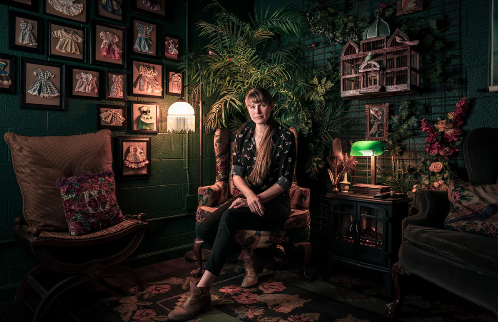 American filmmaker Jessica Oreck next to her museum's exhibits. *art of play*