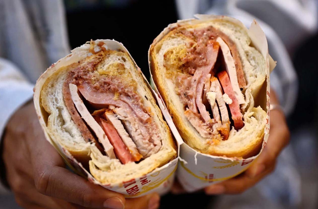Banh mi Huynh Hoa is filled with cold cuts, pate, mayonnaise, shredded pork floss, and sausages. Photo: Quynh Tran