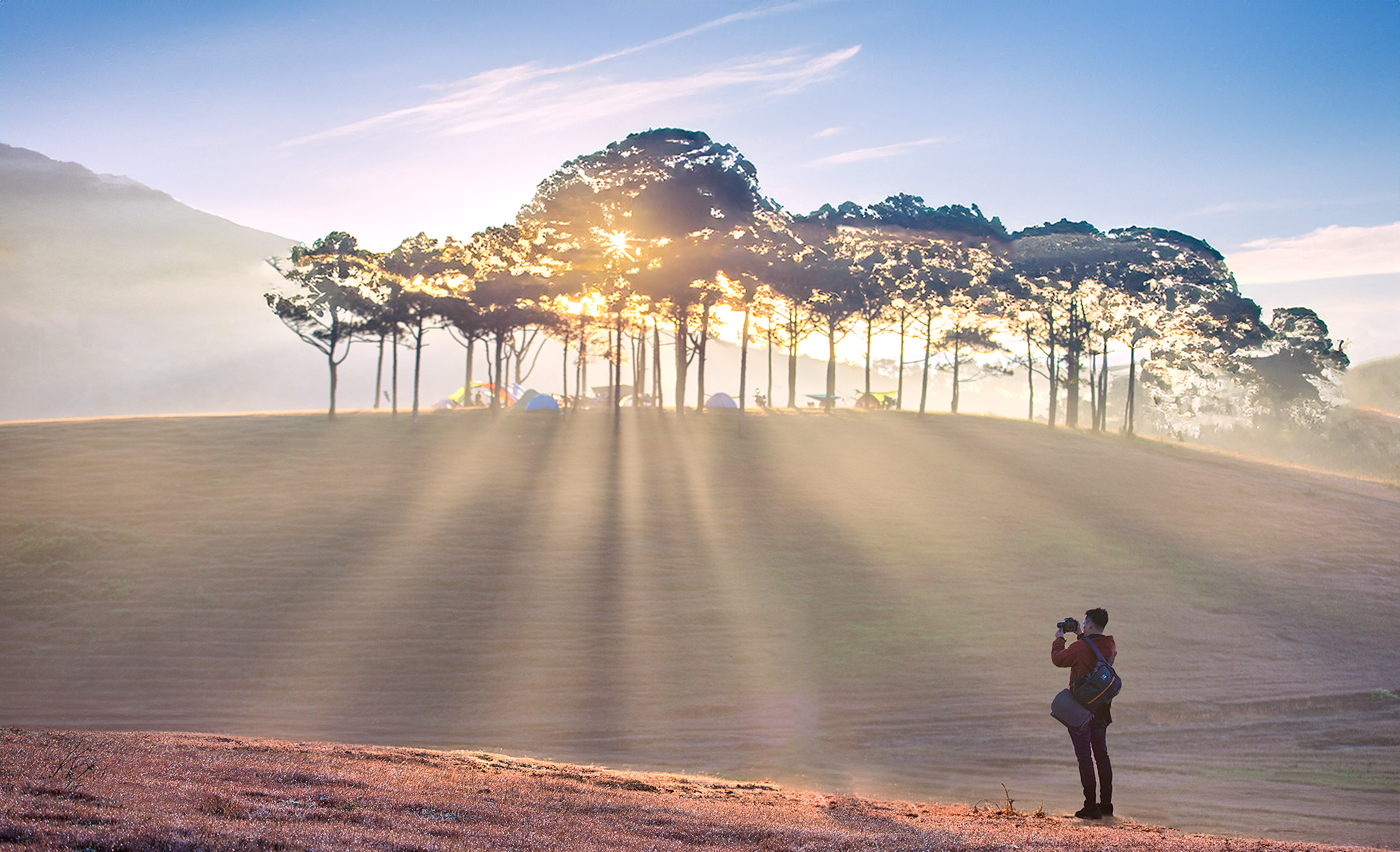 Travel from central Da Lat to Masara hill takes over hai hours. Many visitors choose to camp on the hill the previous afternoon, aiming to capture stunning sunrise and cloud photos the following morning.