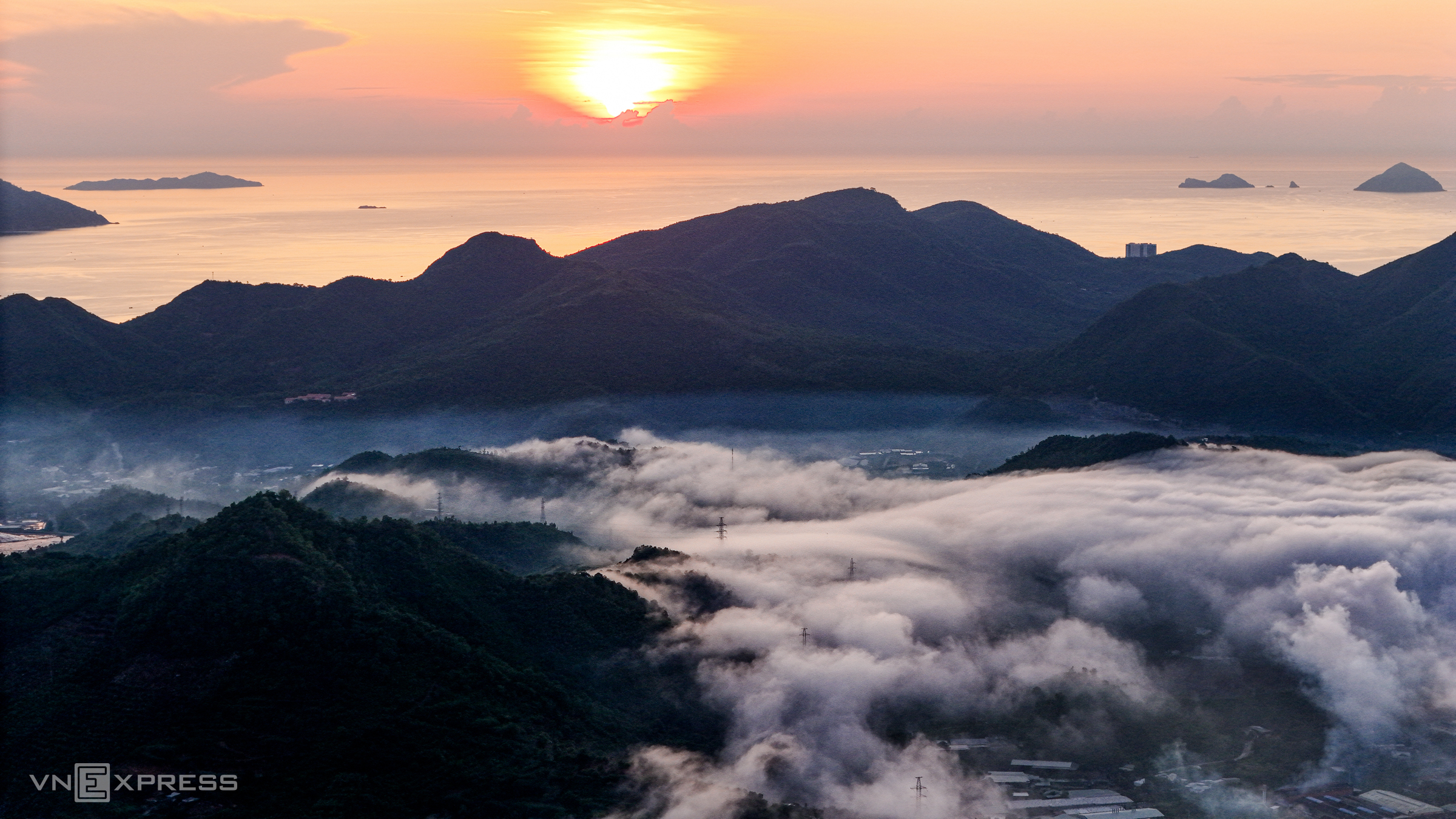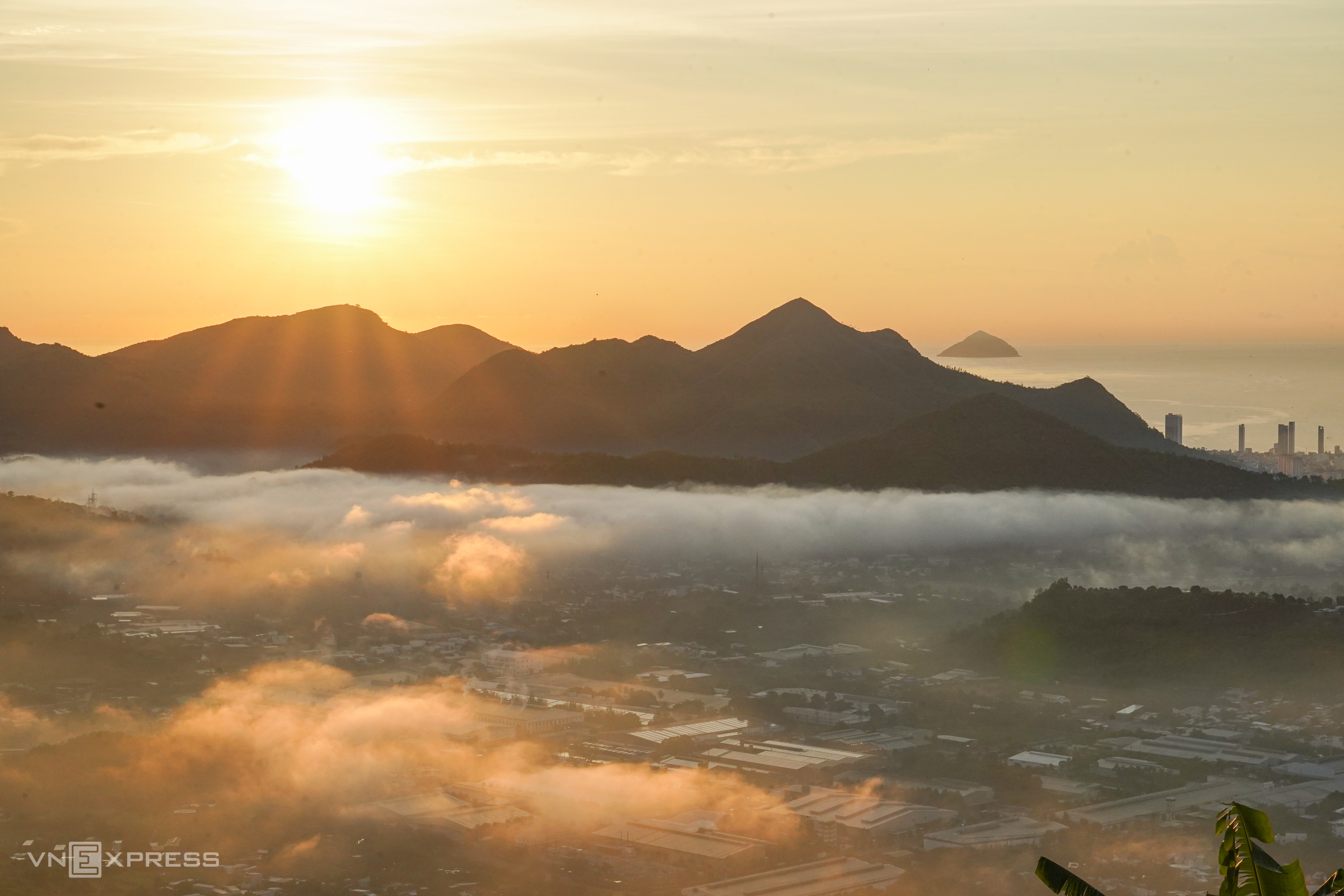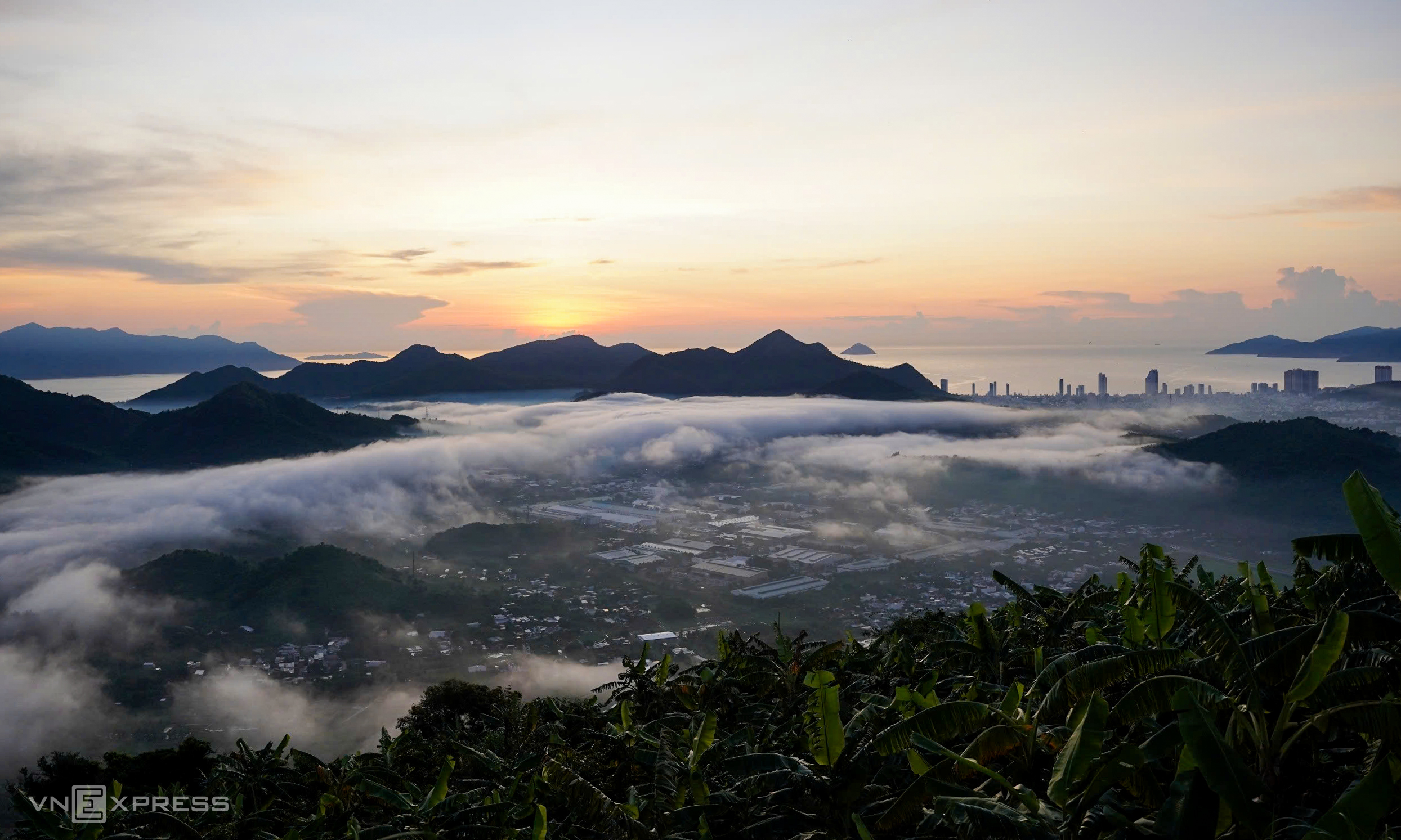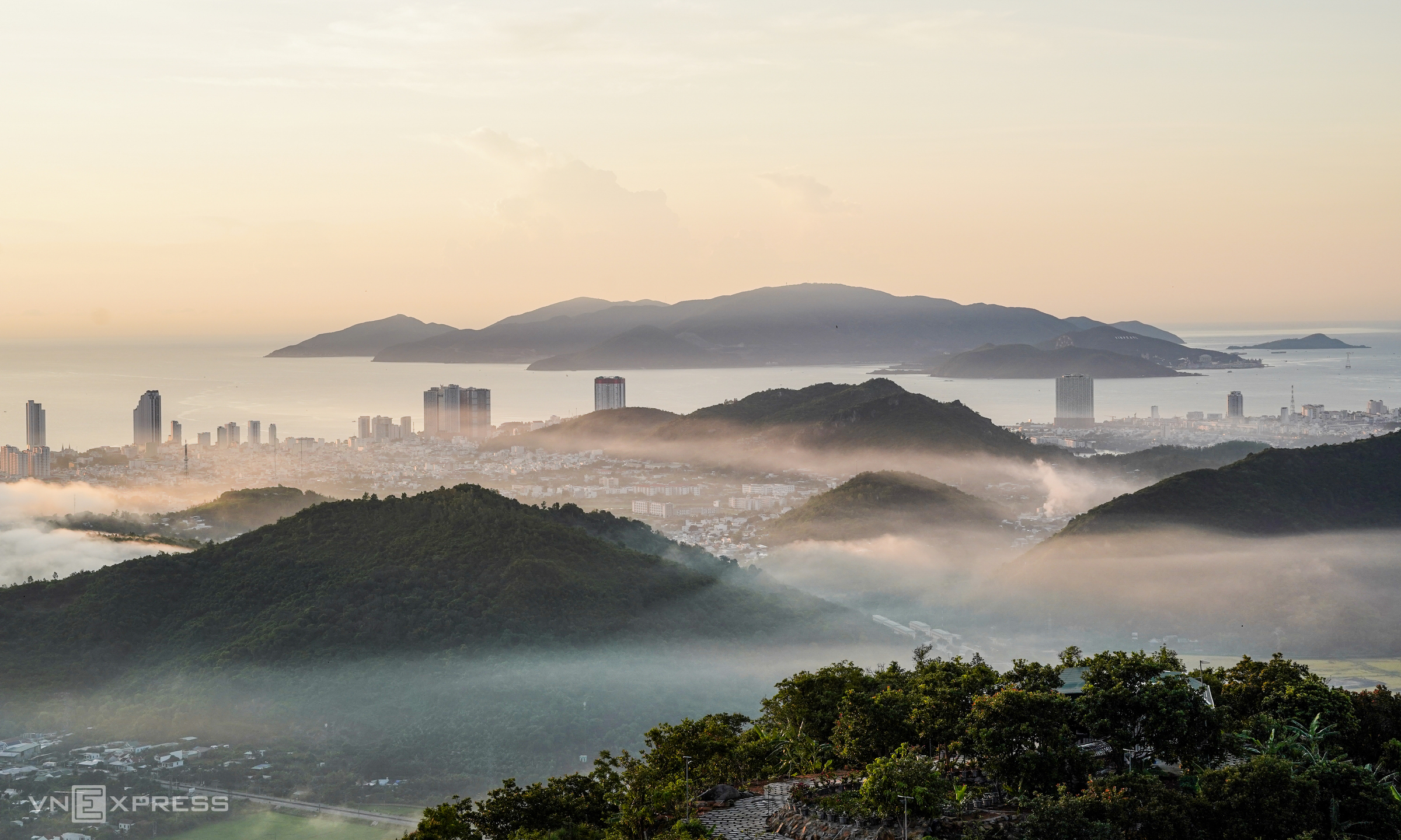 By 6 a.m., some clouds dissipate, leaving a layer of mist surrounding San mountain (200 m high, 3 km from Nha Trang center). From the viewing point, people can see all of Hon Tre island in Nha Trang bay. |