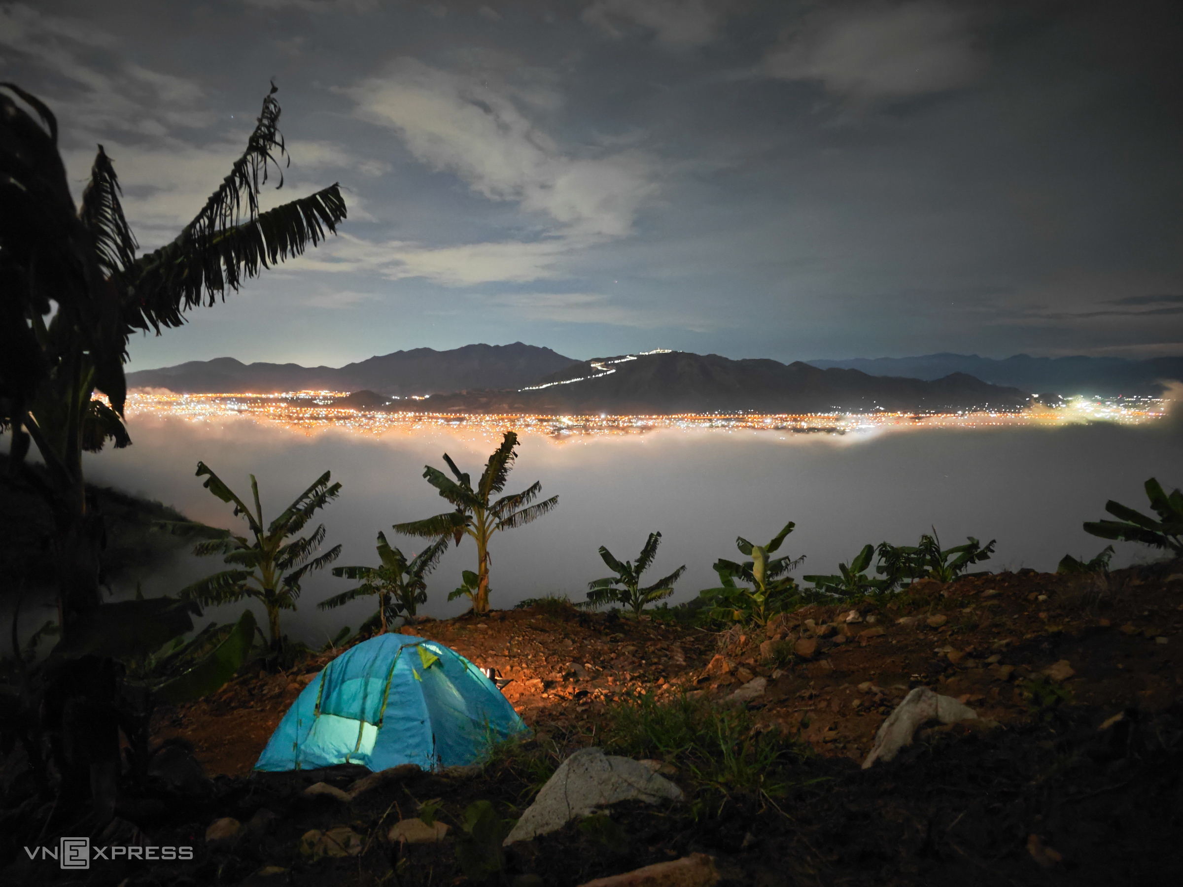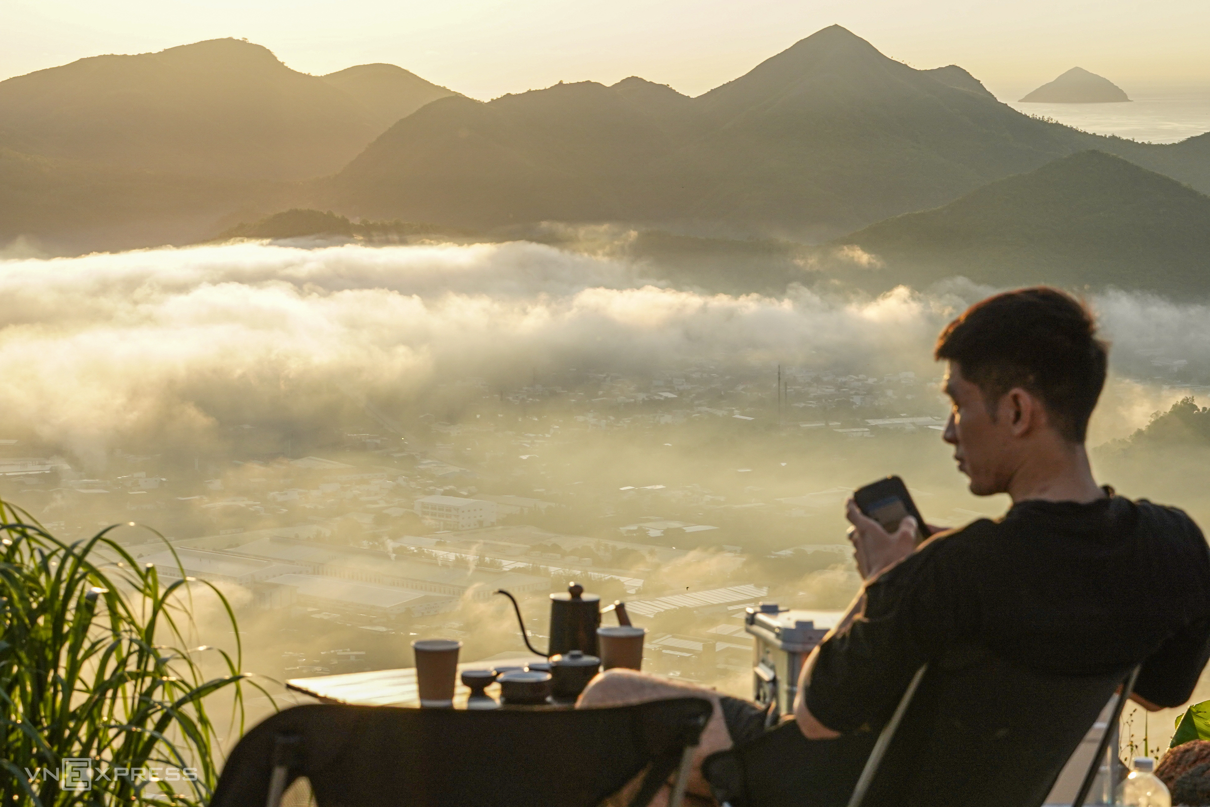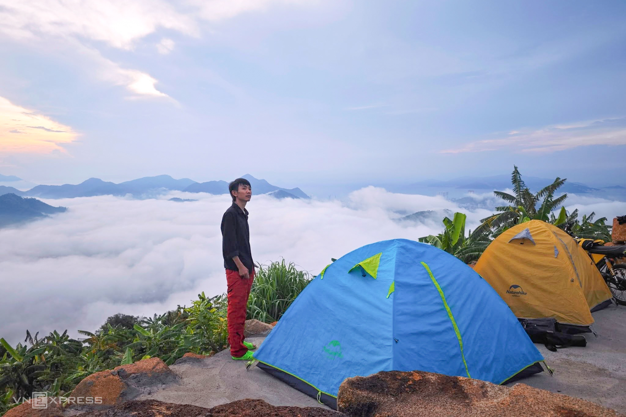 Over the past few days, 33-year-old Nguyen Kaio has been packing camping gear like tents, tables, and chairs to ascend Hon En mountain, over 400 m high in the former Vinh Phuong commune (now Bac Nha Trang ward), to "chase clouds."