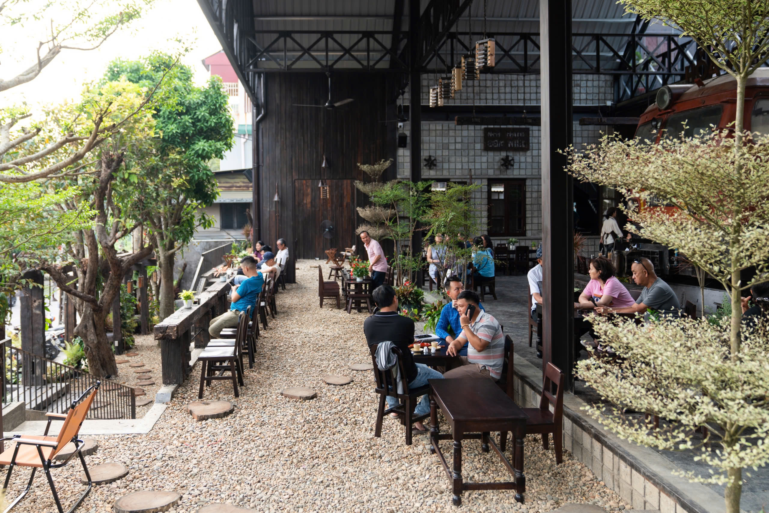 A section of the cafe sits adjacent to Hue station, offering guests a close-up view of passing trains from their seats, all while maintaining safety. A glass wall separates the tracks from the seating area, with security personnel always present. Photo: Dong Vy Ho |