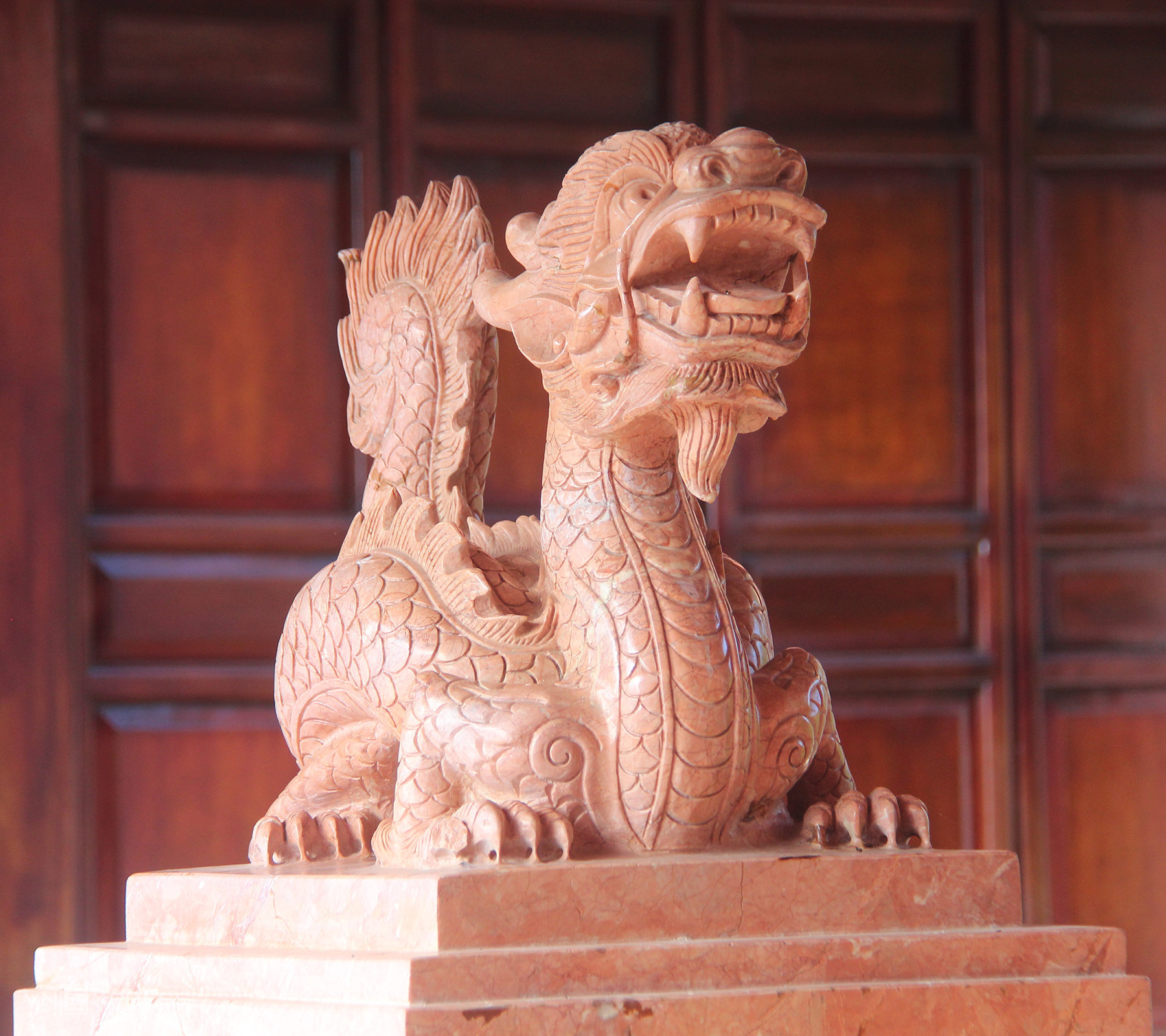 Stone dragons and unicorns are placed at both the main altar and the square altar.
