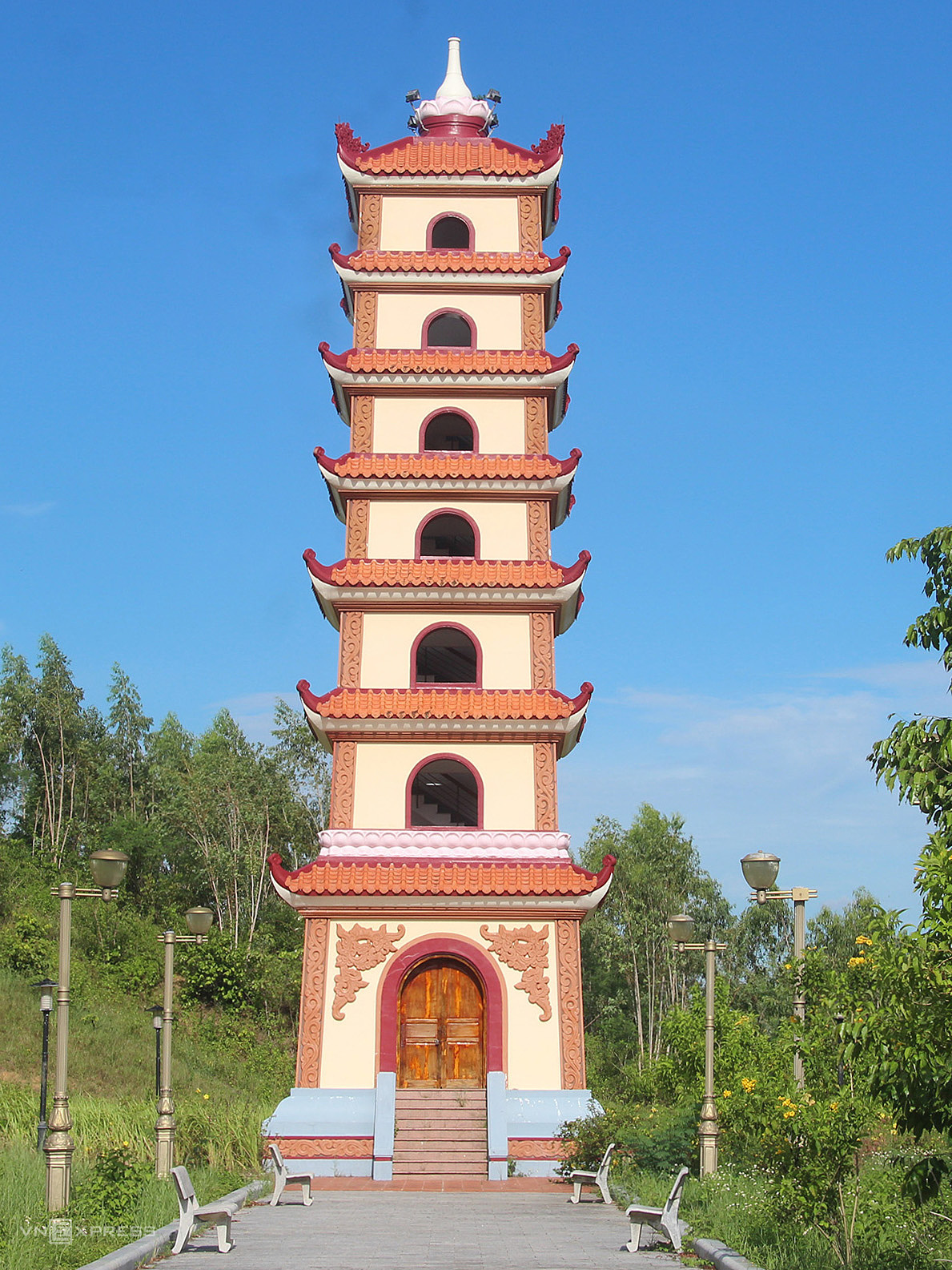 The Thong Linh Tower is square, with 7 stories symbolizing the connection between humanity and heaven, and between past and present. |