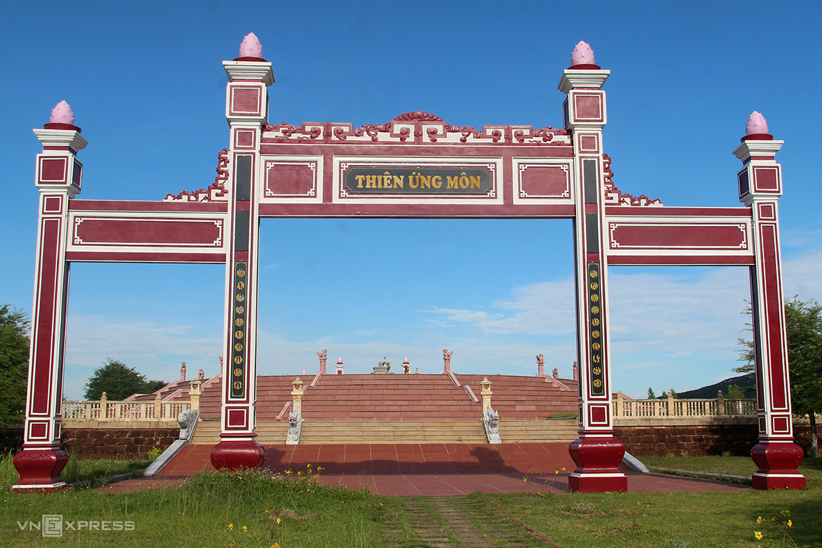 The Kinh Thien Altar is situated on An Son peak, in Binh Phu commune (formerly Tay Son district, Binh Dinh province). An Son is a low mountain on the right bank of the Kon River, surrounded by the Hoanh Son mountain range. The complex, completed in 2012 and spanning over 28 hectares, earned provincial-level historical relic status in 2017. It comprises three main areas: the Kinh Thien Altar, the An Temple - Thong Linh Tower, and administrative buildings. All structures are symmetrically arranged along a north-south sacred axis.