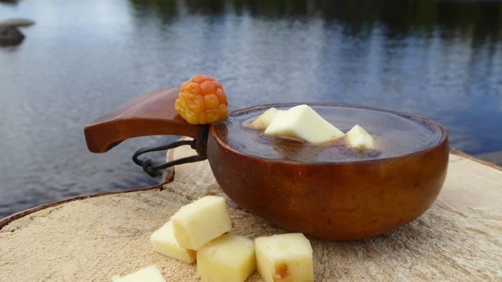 Locals often use wooden cups made from birch burls to drink kaffeost. *President*. |