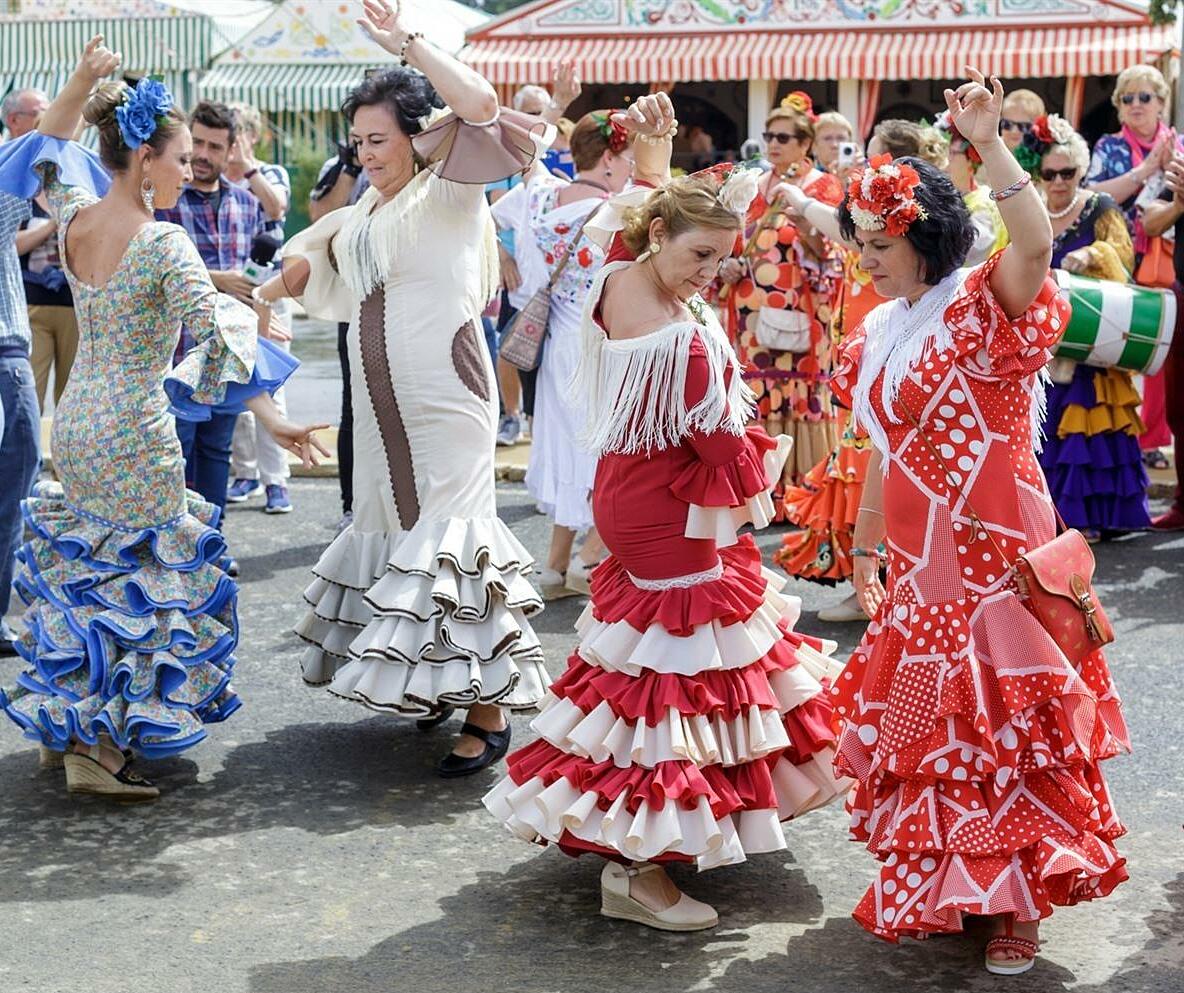 Locals and tourists participate in a flamenco dance on the streets during a festival in Seville, Spain in 2024. Photo: Lorian new alisa |